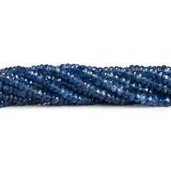 Beads average 16x8mm with a few mm of variation possible. These curated beauties feature high-quality blue Kyanite with a rich color on cloudy and translucent bodies. Expect a fairly consistent oval shape with smooth, plain polished faces. Fans of Kyanite should jump on these beauties, capable of wowing in any design wrapped in our signtature gold leaf.