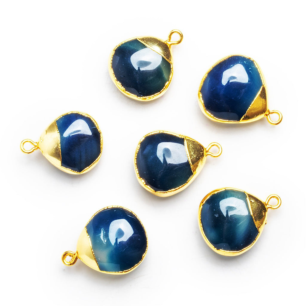 Experience our Deep Blue Chalcedony Gold Leafed Pendants, measuring 18mm in diameter. The deep, rich hues of blue evoke the mystery and vastness of the ocean at twilight. With a smooth, glossy surface, the chalcedony's vibrant color is beautifully enhanced by the gold leaf accent, creating a striking contrast that adds a touch of opulence. These pendants offer a dramatic yet sophisticated look, perfect for creating bold, elegant designs that capture the essence of the deep blue sea.