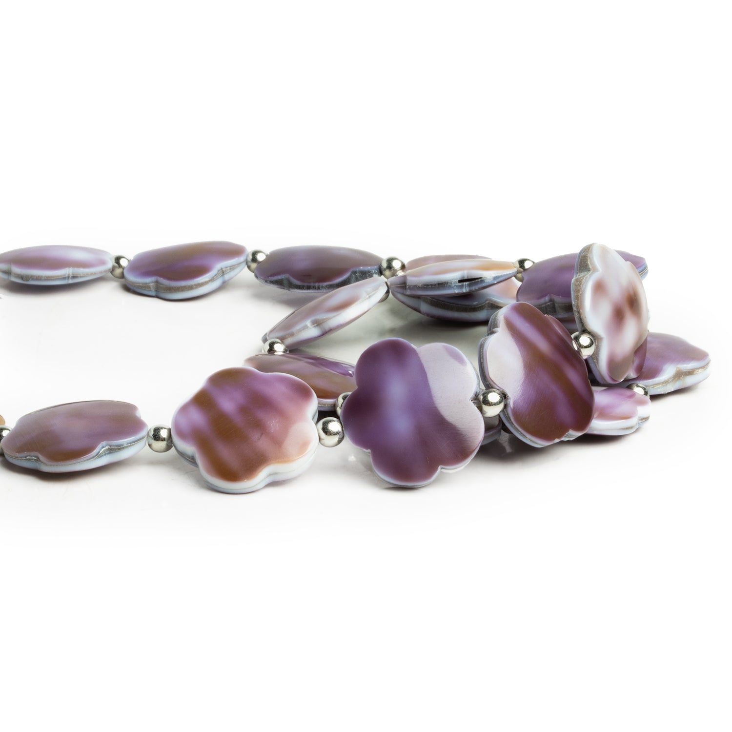 Beads measure about 19mm in diameter with a 1mm Large Hole. These beautiful shell pieces are masterfully crafted into a sizable flower shape. Expect a gorgeous purple-hued patterning to adorn each bead, capable of serving as eye-catching focals of designs in necklaces and earrings. Their rich purple color will work well with metals like gold and many gemstone varieties.
