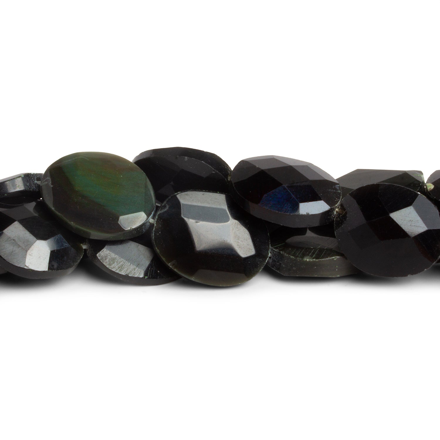 These dramatic Rainbow Obsidian faceted ovals showcase a deep jet-black body highlighted by subtle, shifting flashes of green, blue, and bronze when turned in the light. Each bead is expertly cut with crisp facets that enhance the natural sheen of the stone, giving the strand a refined, high-end feel while still maintaining the organic beauty Obsidian is known for. Their smooth polish and consistent oval shaping make them an elegant choice for statement jewelry.