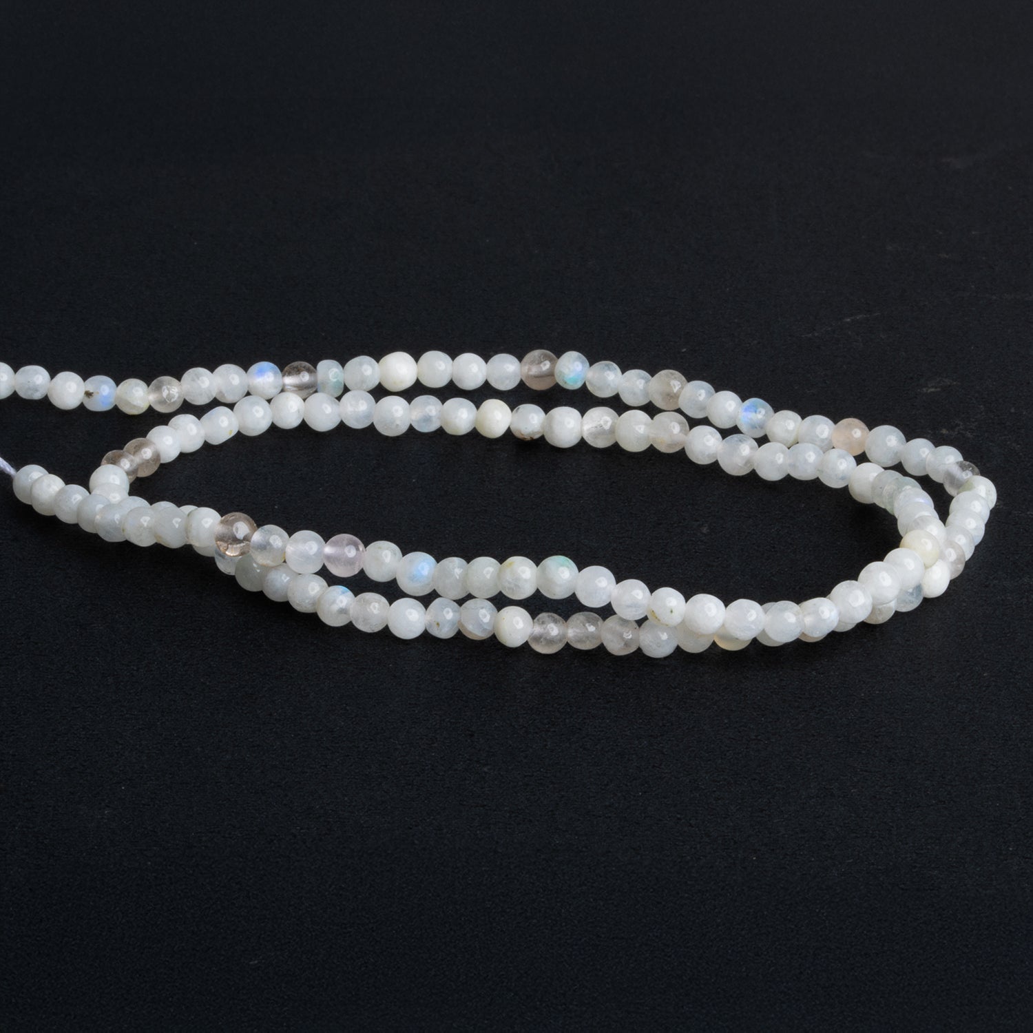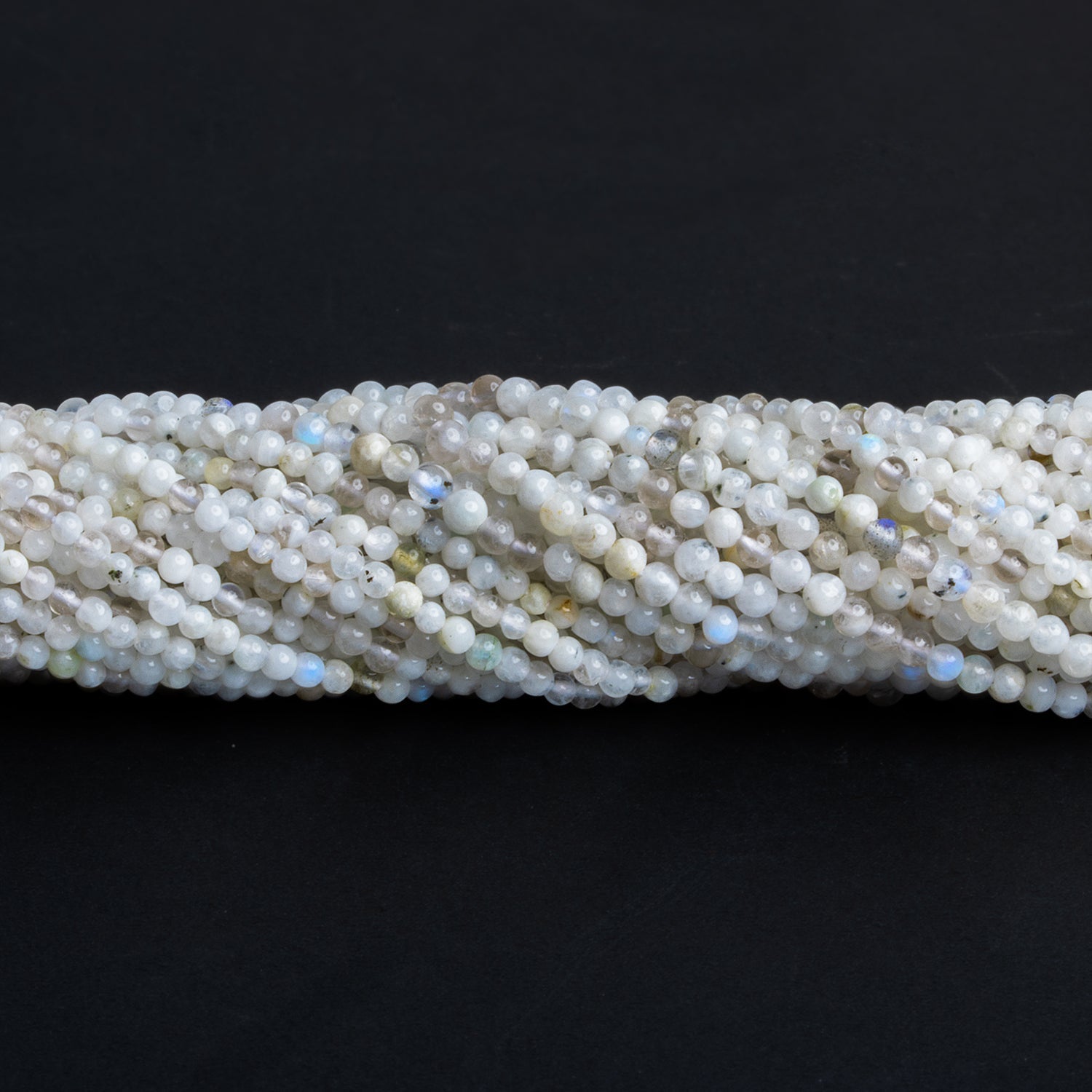 2-2.5mm Rainbow Moonstone Handcut Rounds 12 inch 120 beads