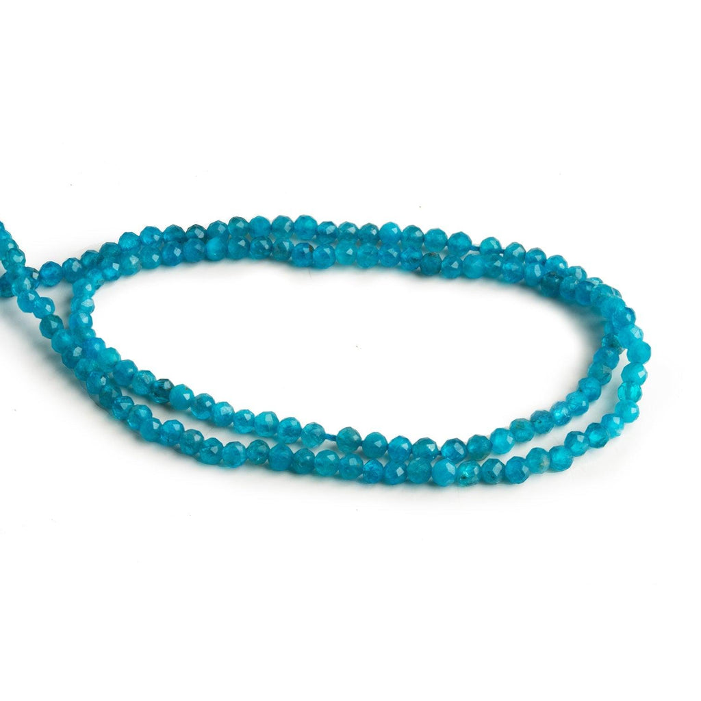 2.5mm Neon Apatite Microfaceted Rounds 12 inch 120 beads