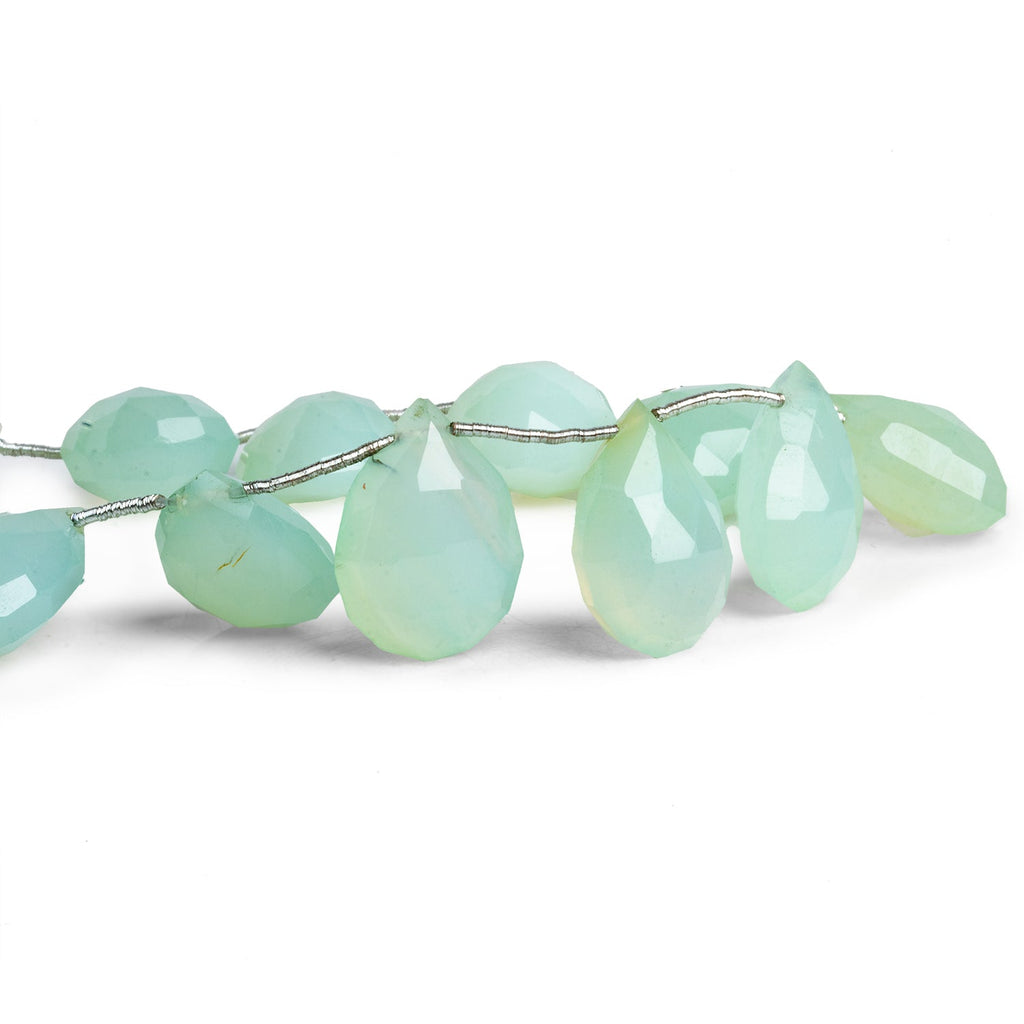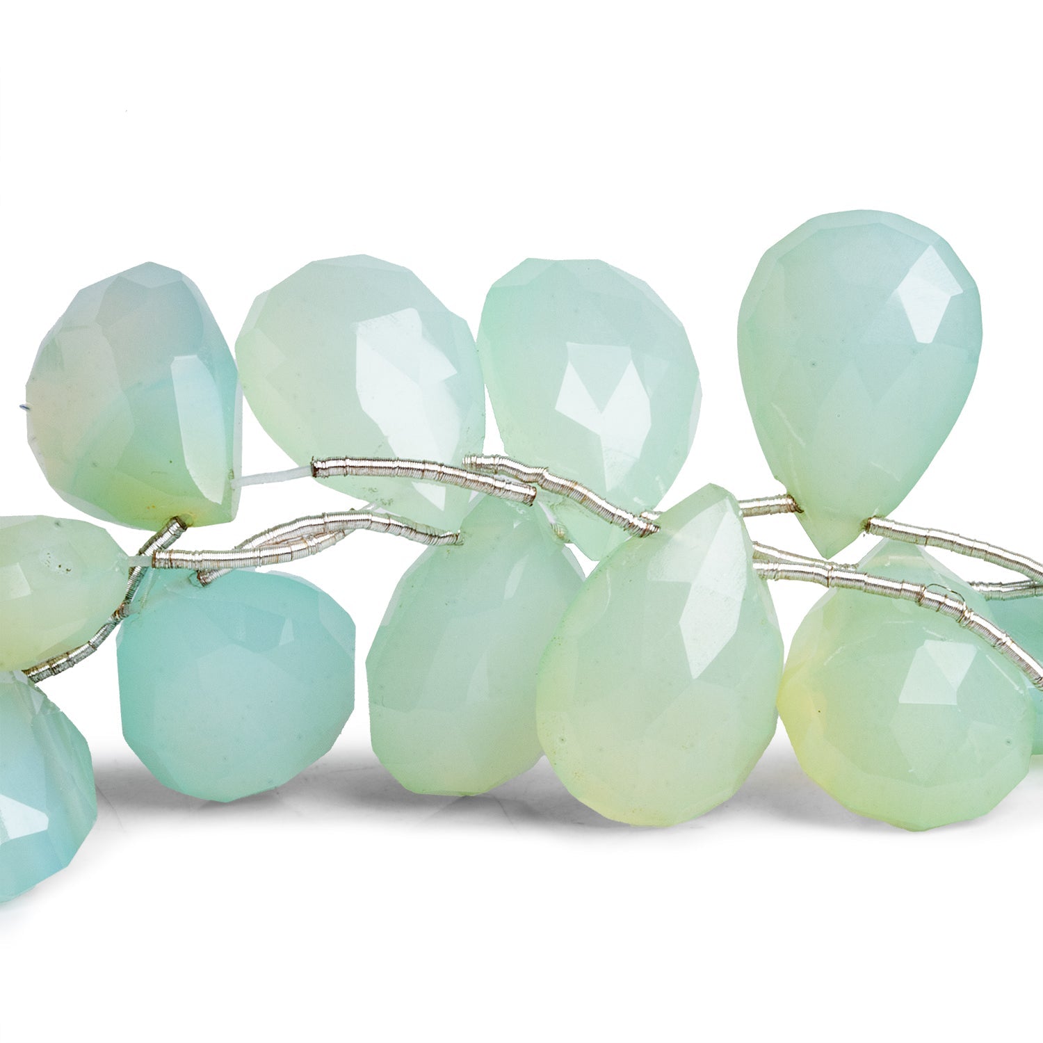 These Blue Chalcedony Faceted Pear Beads bring a refreshing pop of color to your designs. With sizes ranging from 16x12mm to 24x15mm, each bead features a beautifully soft, translucent blue hue that transitions subtly to a delicate green. The pear shape, along with the faceted surface, enhances the stone’s natural beauty, catching light from every angle and adding a sophisticated, luminous glow to any piece.