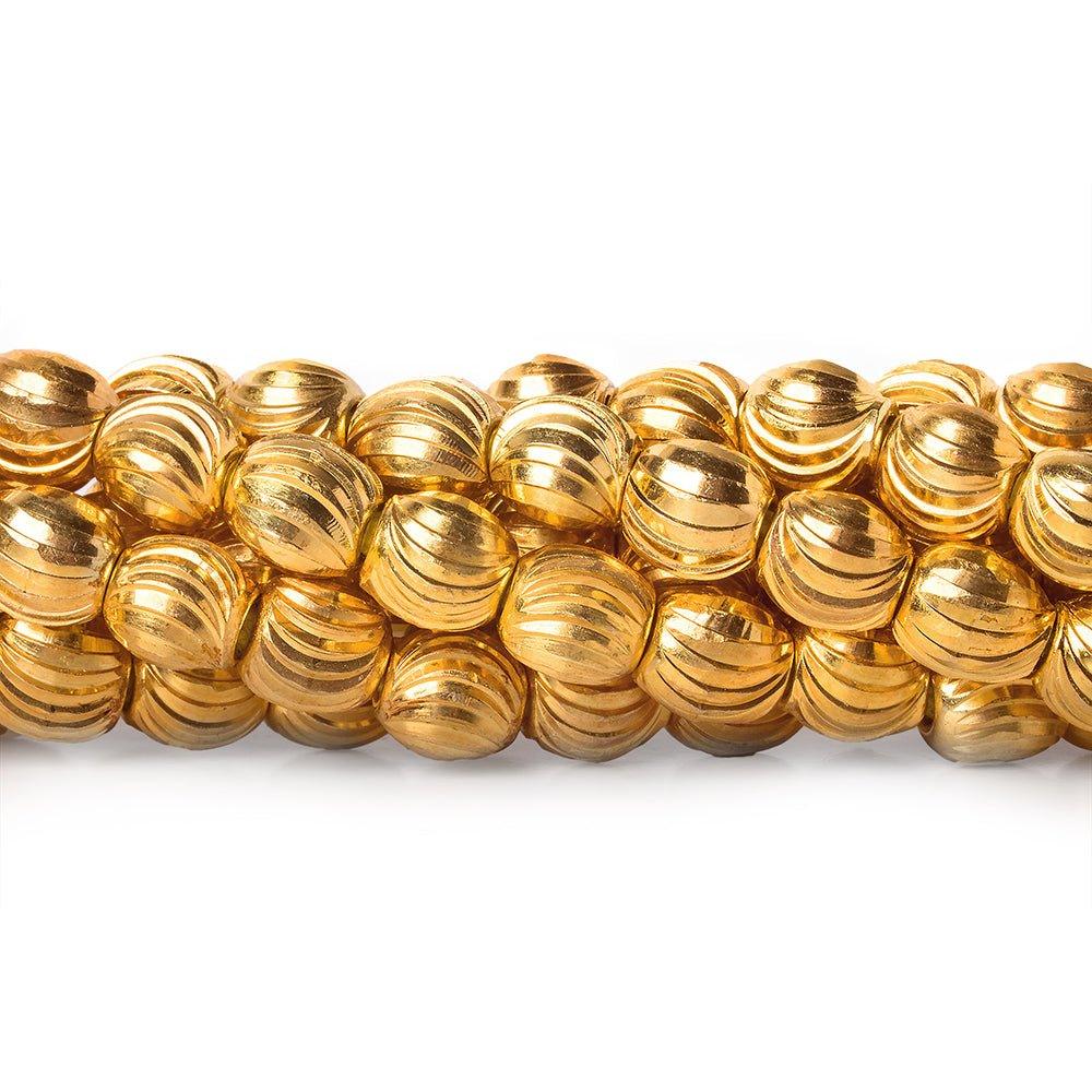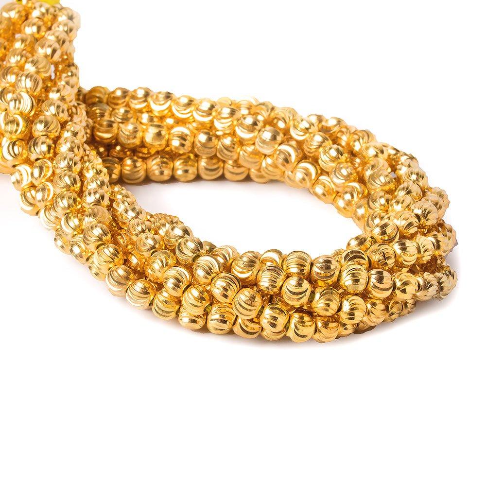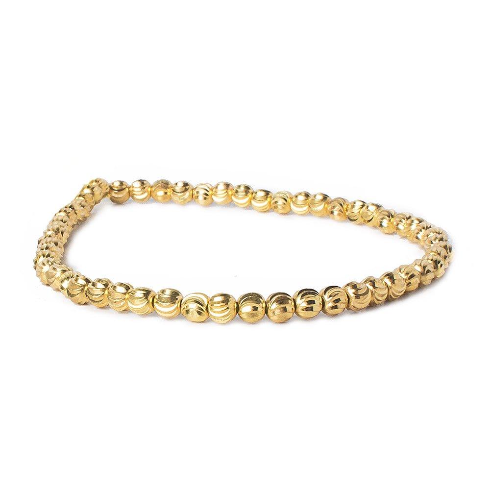 Elevate your designs with the refined elegance of these 4mm 22kt Gold Plated Brass Wavy Groove Round Beads. Each bead is expertly laser cut with graceful wavy grooves, creating a dynamic play of light across the surface. The radiant 22kt gold plating enhances the shimmering texture, giving these beads a luxurious, timeless appeal while the durable brass base ensures long-lasting wearability.