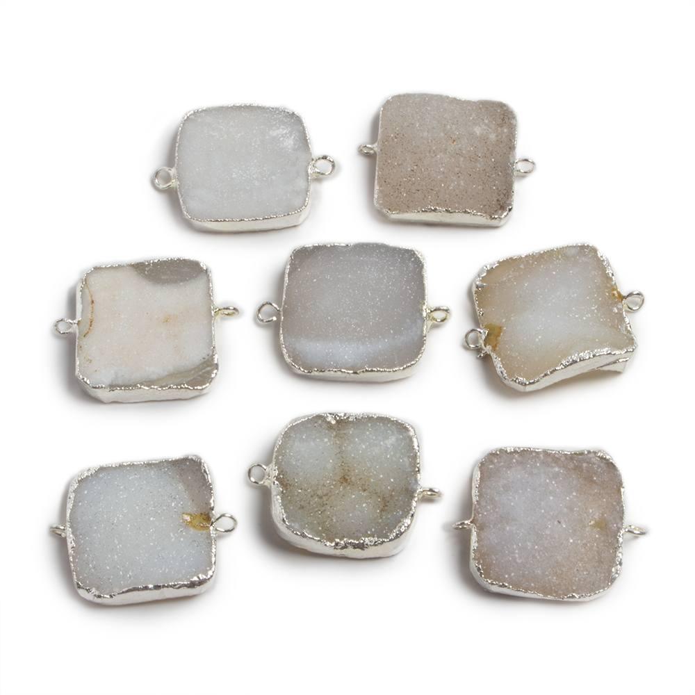 22x22mm Silver edged White Square Drusy Connector 1 focal bead
