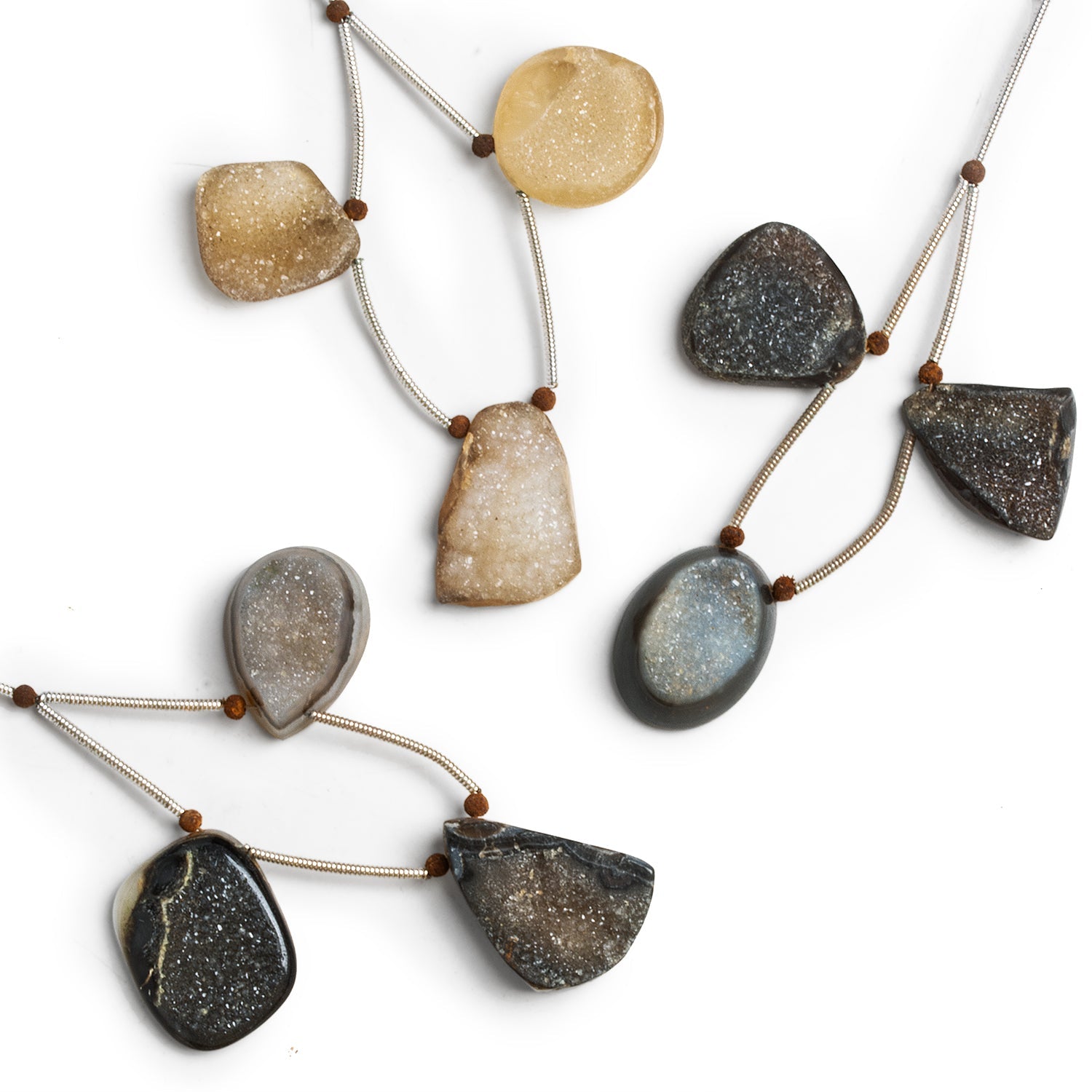 Sold in sets of 3, these focal pieces are ideal for one-of-a-kind statement jewelry. Their varied hues and sparkling textures offer a raw, elemental beauty that pairs effortlessly with both warm and cool tones, making them a versatile and eye-catching choice for designers and collectors alike.