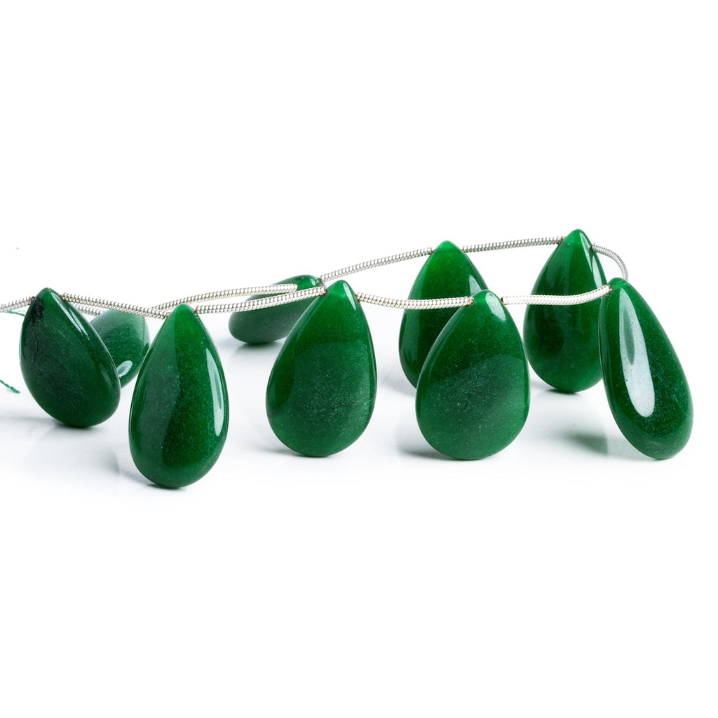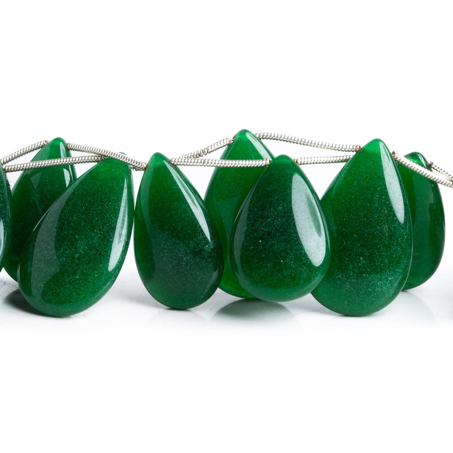 Beads range from about 20x14mm to 27x17mm. These sizable pieces offer a rich forest green color palette that is highly consistent across strand. Our smooth polished pears are capable of catching eyes in virtually any jewelry design from necklaces to earrings and will work well with a variety of metals and other gem stones.