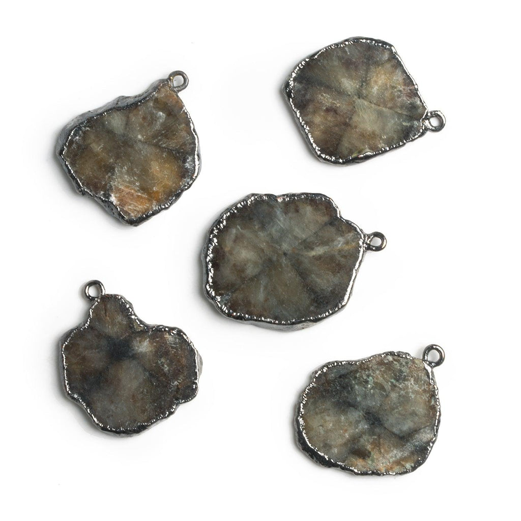 25x22mm Black Gold Leafed Andalusite Chiastolite Slice Pendant