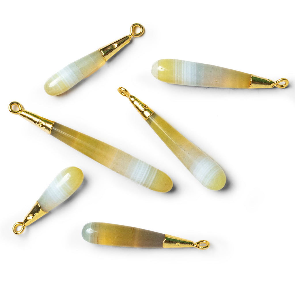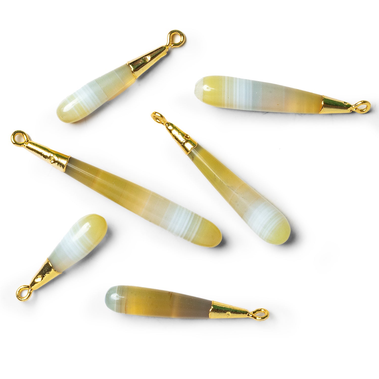 28x6mm Gold Leafed Yellow Banded Chalcedony Teardrop Pendant