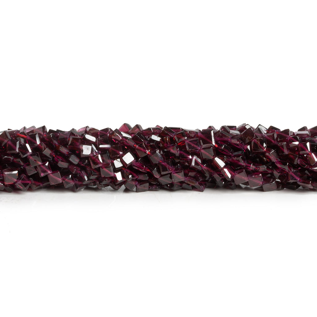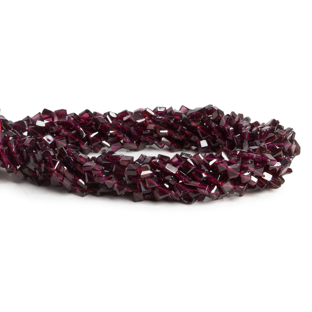 Beads range from about 3mm to 4mm in diameter. These beautiful, dainty pieces show off a rich purplish red garnet color palette that is consistent across strands of translucent bodied, smooth faced kites. Our tiny kite pieces feature a relatively light coloration and are drilled corner to corner, making them ideal for use in a wide-range of Jewelry Designs. Fans of elegant and bite-sized garnet shapes will love these curated strands, perfect for use in necklaces, earrings and much more.
