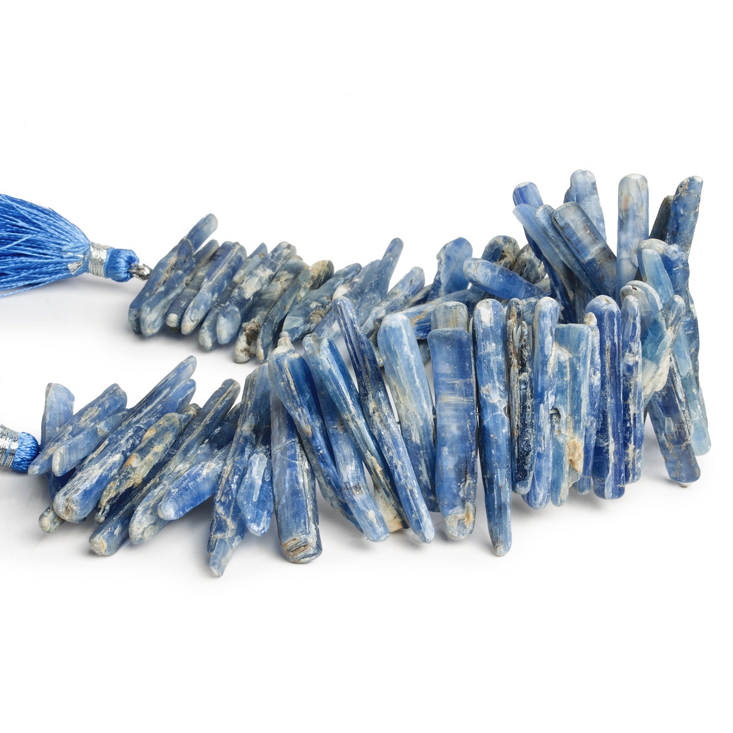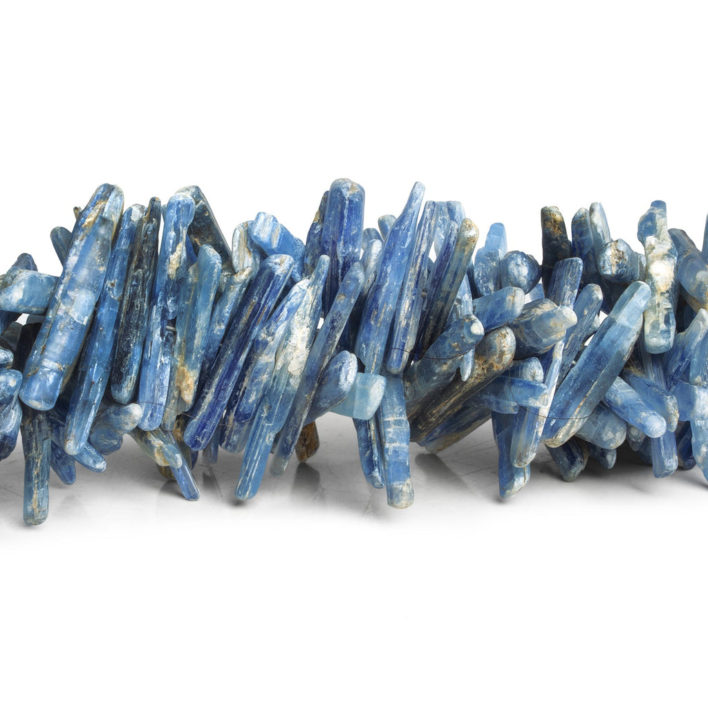 Beads average about 30x5mm. Expect sizes to vary significantly both on and between strands of these elongated natural crystal shapes. These curated Kyanite strands feature a beautiful blue color that highlights the striated textures of this much sought-after gemstone. Kyanite aficionados will find myriad uses in these sure-fire favorites, epitomizing the organic allures of the natural crystal bead. Imbue your designs with the fantastic Mystique of Blue Kyanite in ambitious Jewelry Designs of necklaces, earrings and much more!