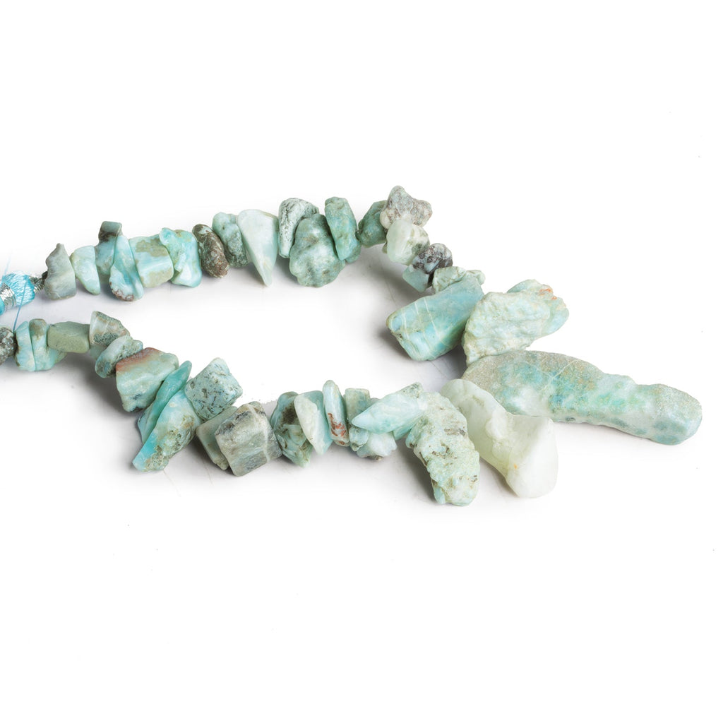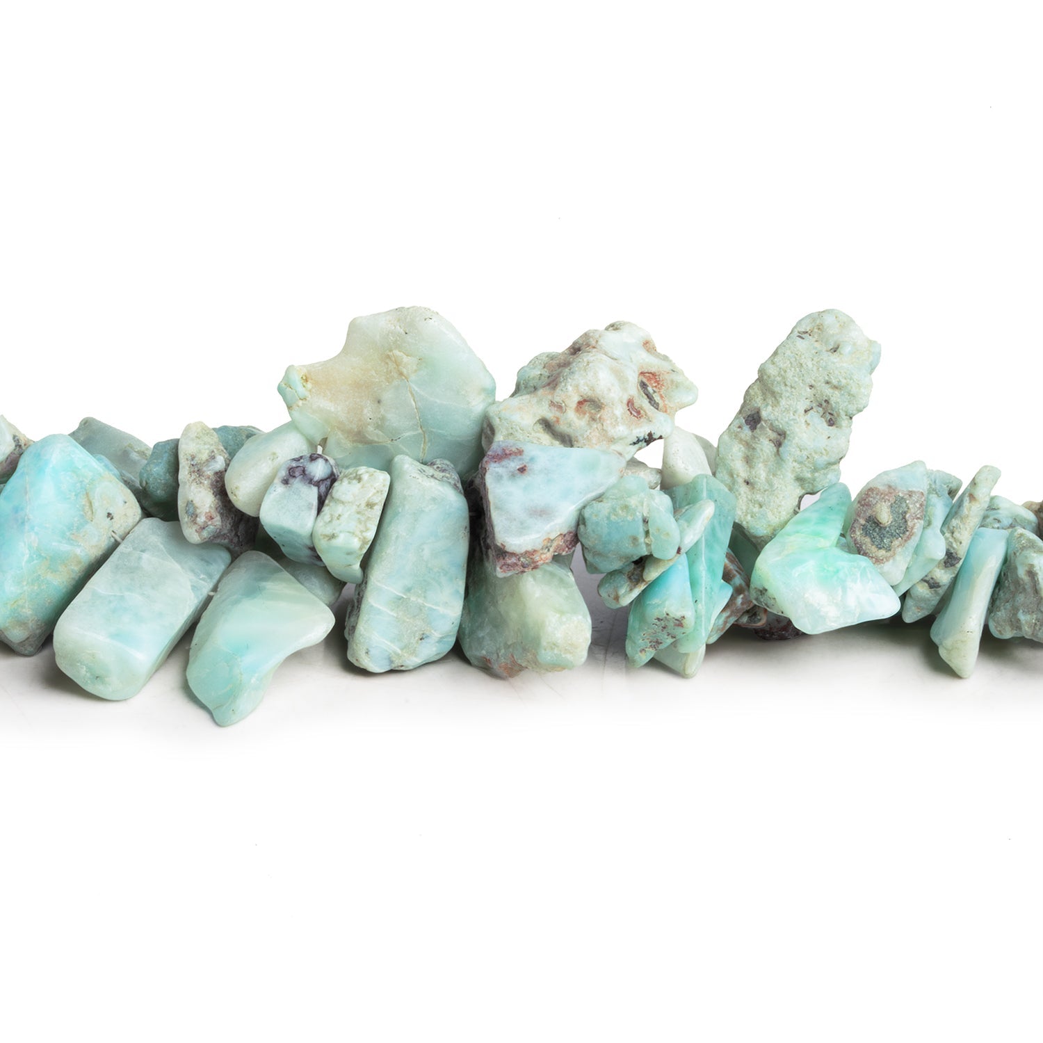 Matte Larimar Chip Beads range from approximately 7x6mm to 55x12mm, with each strand containing around 33 beads. These raw, organic chips highlight Larimar’s signature soft blues, seafoam greens, and natural matrix patterns, evoking the serene beauty of tropical waters. Their matte finish enhances the stone’s natural texture, making them perfect for earthy, bohemian, or ocean-inspired jewelry designs.