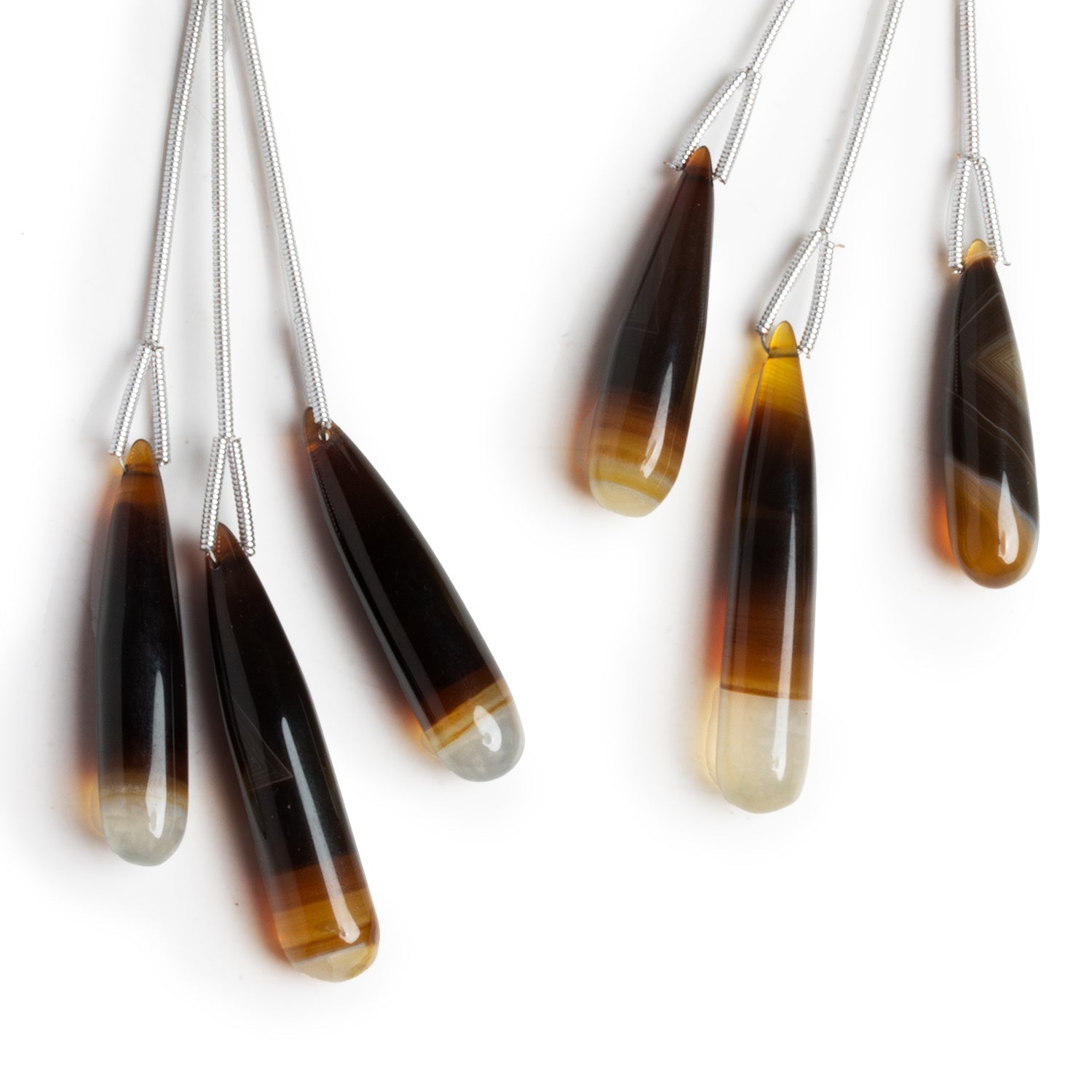 Their eye-catching design and natural color variations ensure that they can stand out as focal pieces in a necklace or bracelet, while their elongated form adds a sense of elegance and flow to any jewelry project. Whether used in a single statement piece or combined with other complementary stones, these Brown Banded Chalcedony Teardrops will bring sophistication and an organic feel to your creations.