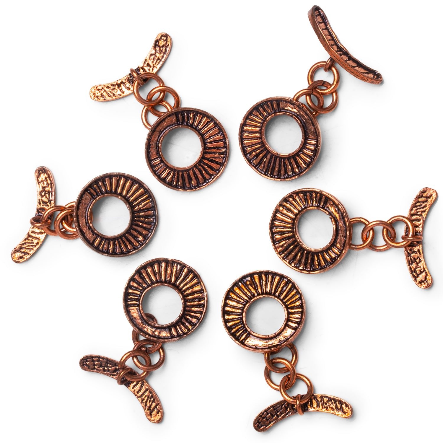 These Copper Sunburst Toggles radiate with warmth and charm, featuring a bold circular design etched with fine, sunray-like lines that draw the eye to the center. Measuring approximately 34x18mm, each toggle exudes a rustic, celestial energy enhanced by the rich copper patina and textured finish.