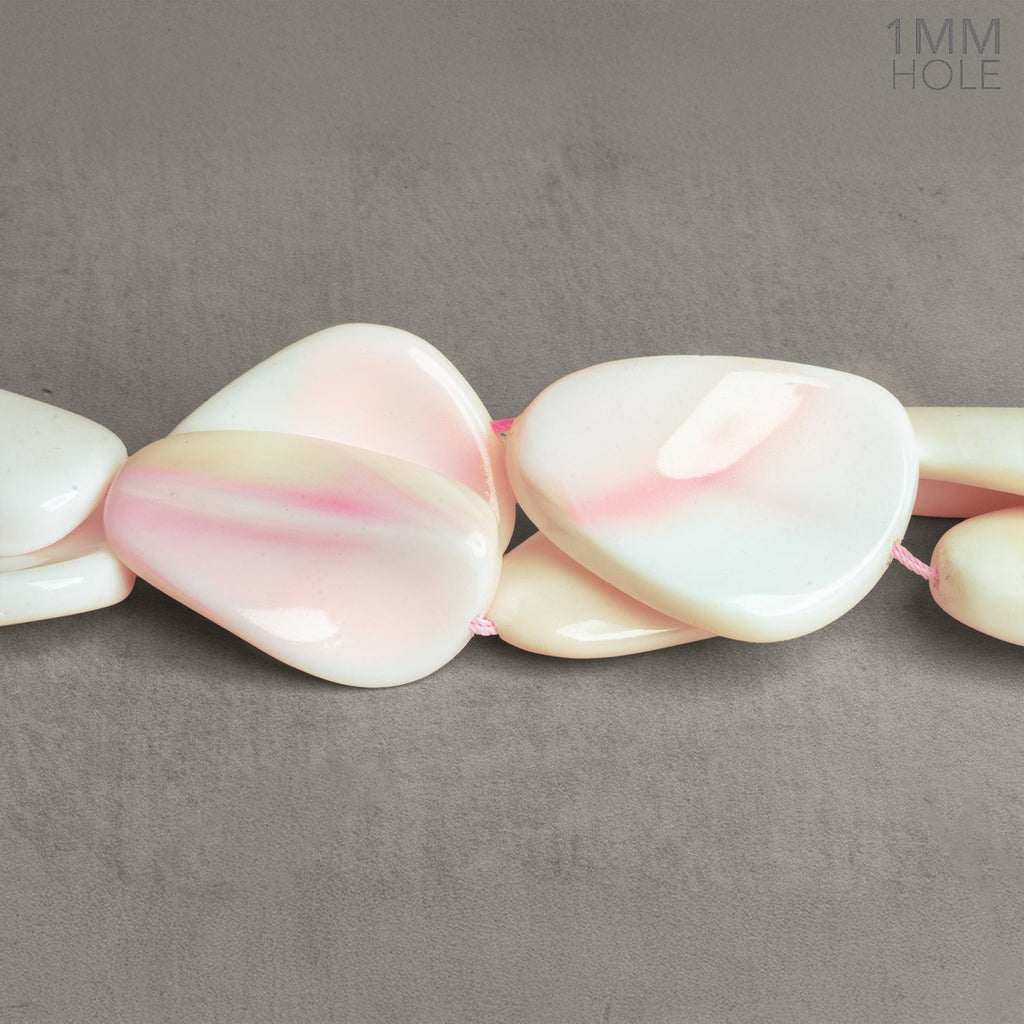 These beautiful Queen Conch Shell Nuggets showcase a stunning blend of soft pinks, creams, and whites, offering a natural, polished sheen that adds a touch of elegance. Each bead measures between 30x23mm to 38x28mm, with organic, irregular shapes that create a sense of nature's charm. The soft, translucent tones of these beads make them a perfect addition to jewelry designs, whether as focal points or strung into statement pieces. Maximize versatility in cording with a large 1mm drill hole.