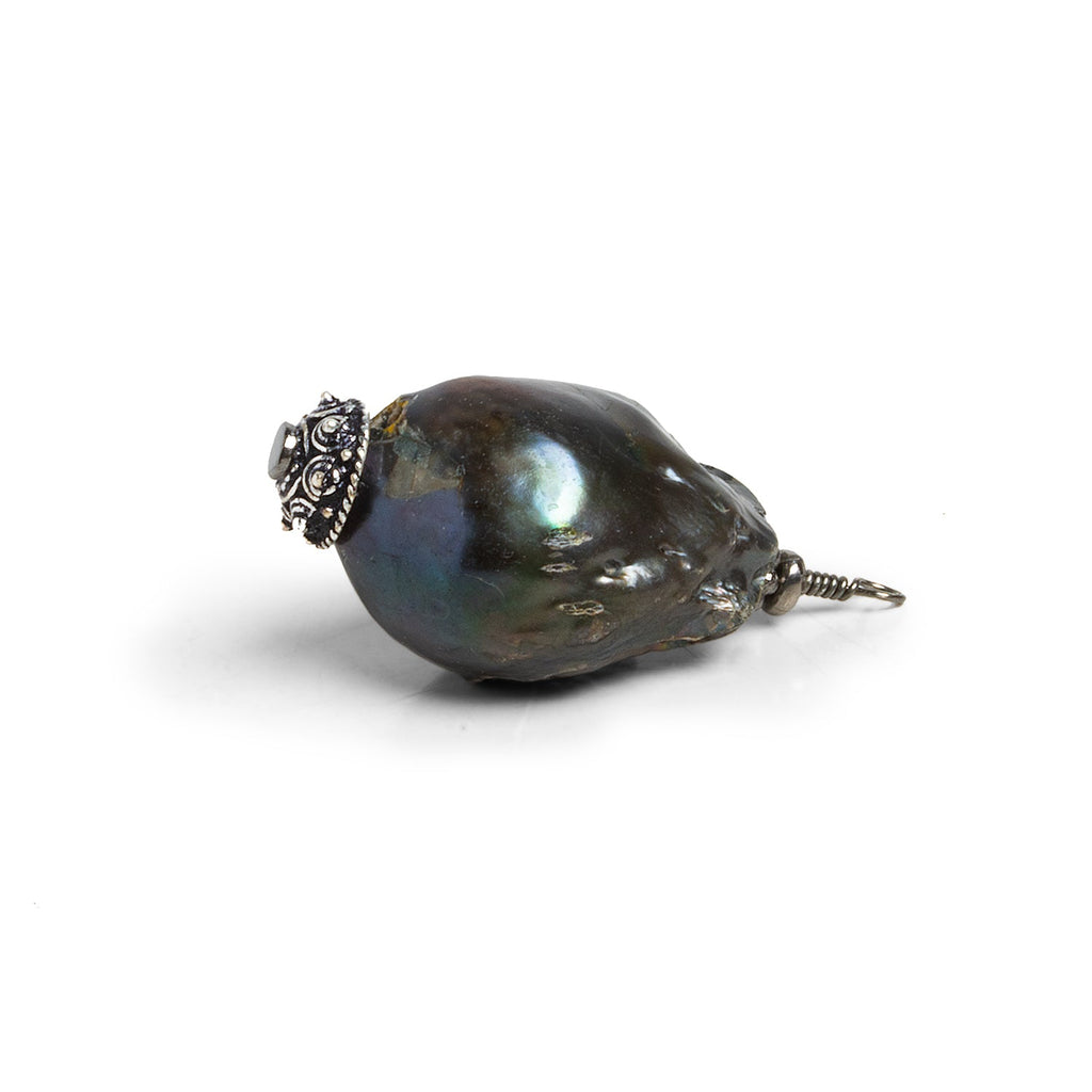This fantastic Ultra Baroque Pearl focal measures 36x28mm and has been meticulously wire-wrapped with the addition of black gold spacers and an ornate beadcap on our black gold plated wire. Seekers of a fine pearl focal bead stemming from a high-quality Ultra Baroque should jump on these signature offerings perfect for bringing together a necklace.