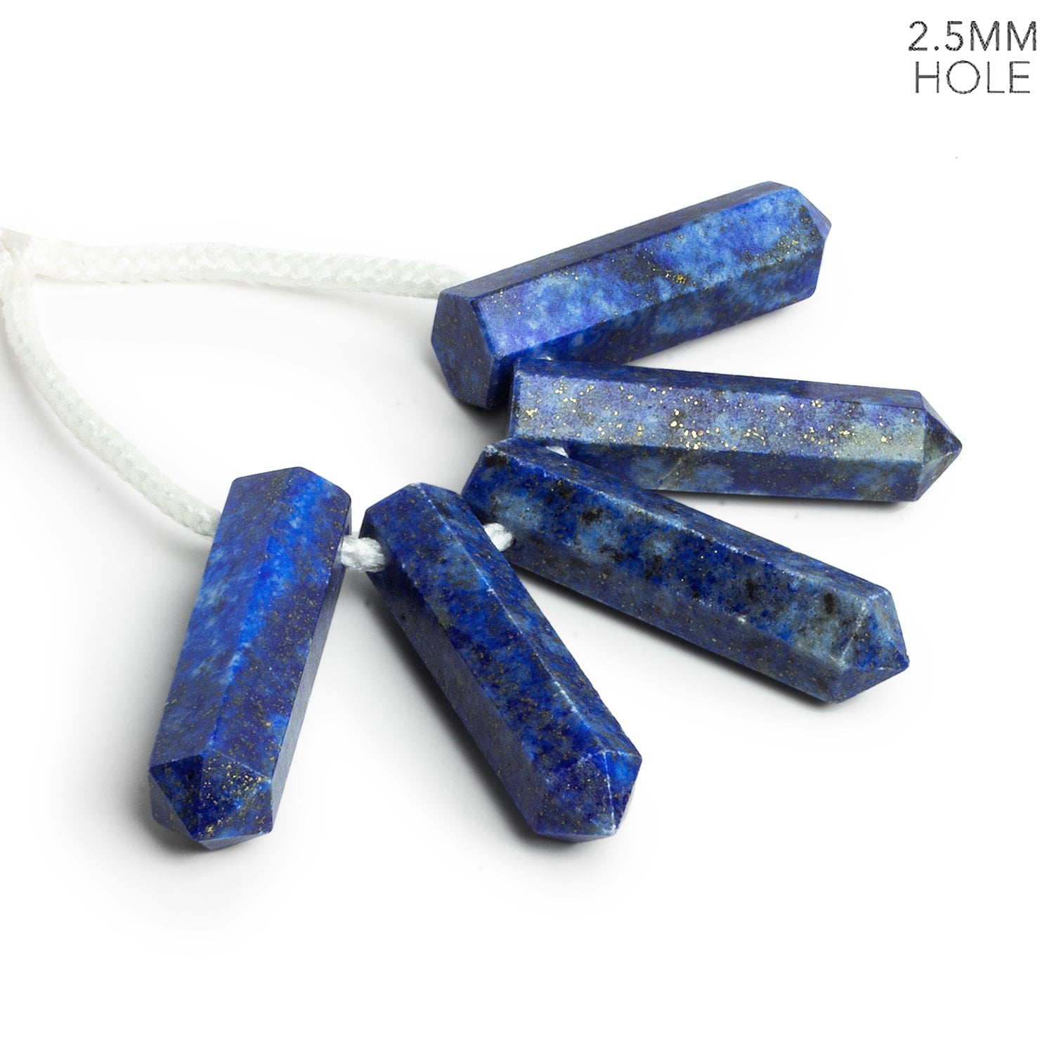 Drilled with a generous 2.5mm hole, these beads are ideal for heavier cords, leather, or large threadwork. Sold in sets of five, they make a bold impact whether used as pendants, central accents in necklaces, or striking additions to boho or statement designs. With their combination of rich coloring and clean faceting, these Lapis points bring regal elegance and earthy texture to your jewelry lineup.