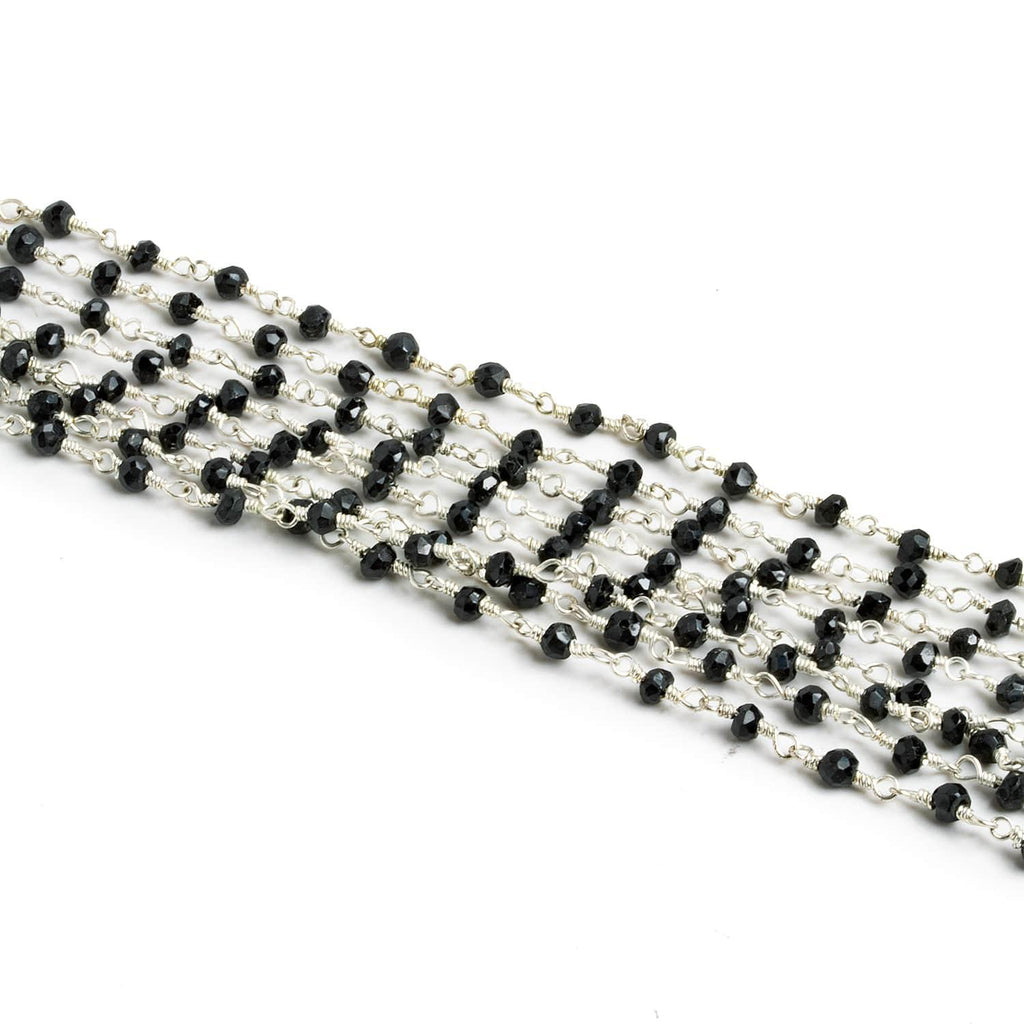 Beads measure about 3mm in diameter with some variation. Includes the 7 feet and 10 inches of silver plated chain seen here.
