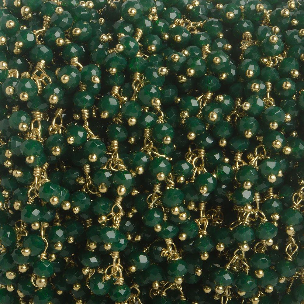 3mm Forest Green Crystal rondelle Gold Dangling Chain by the foot 97 beads