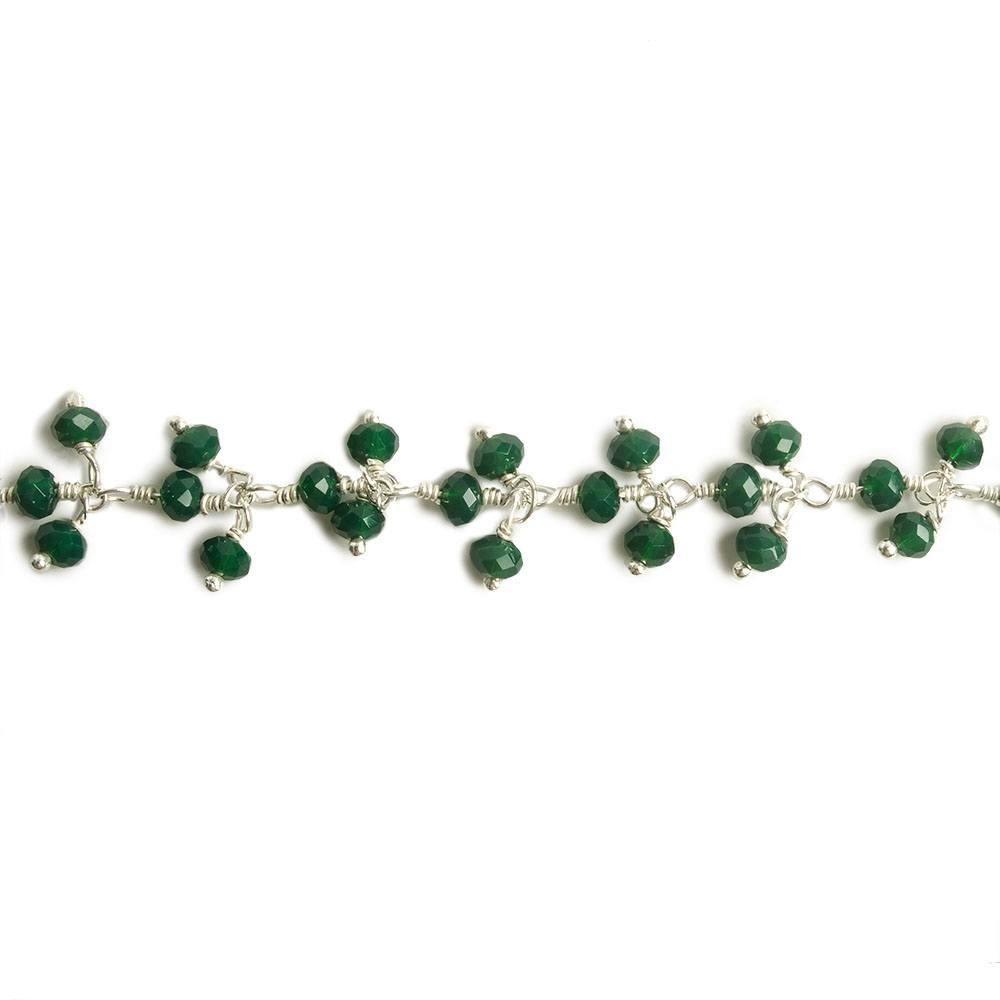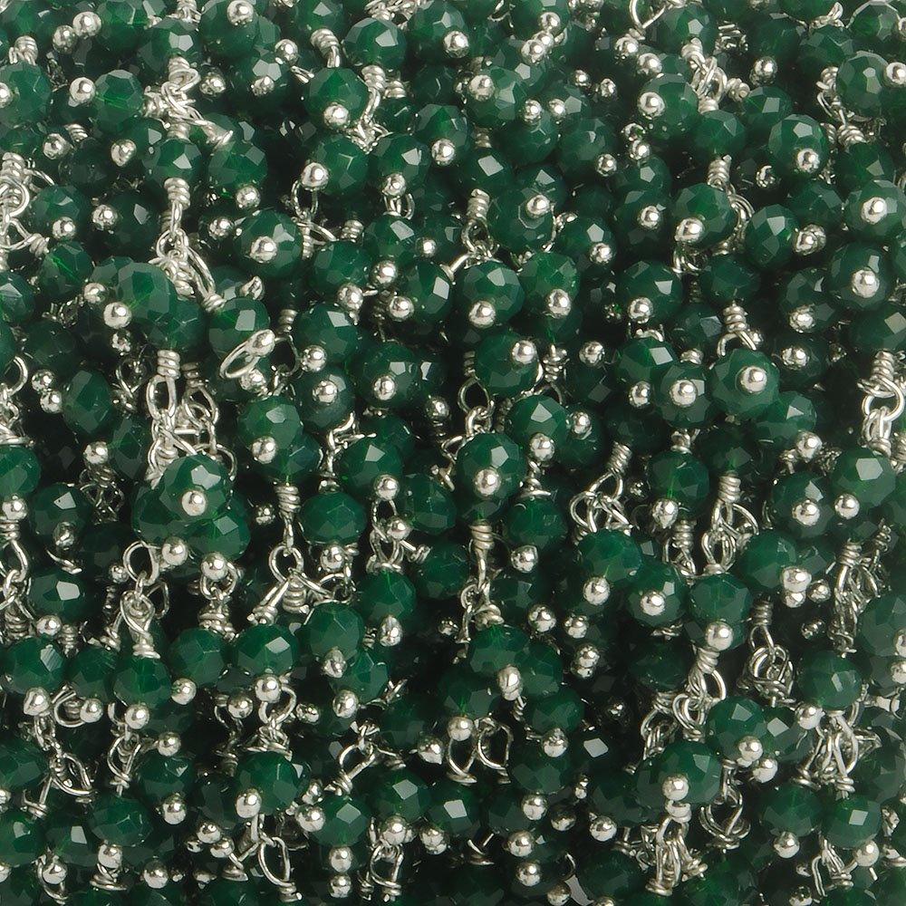 3mm Forest Green Crystal rondelle Silver Dangling Chain by the foot 97 beads