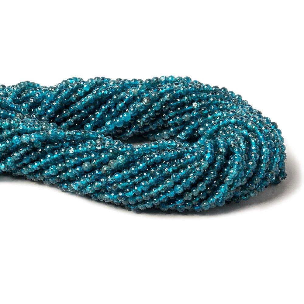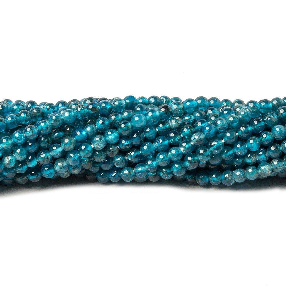 Approximates: 2.5 mm Neon Blue Apatite plain rounds 13 inch 165 beads