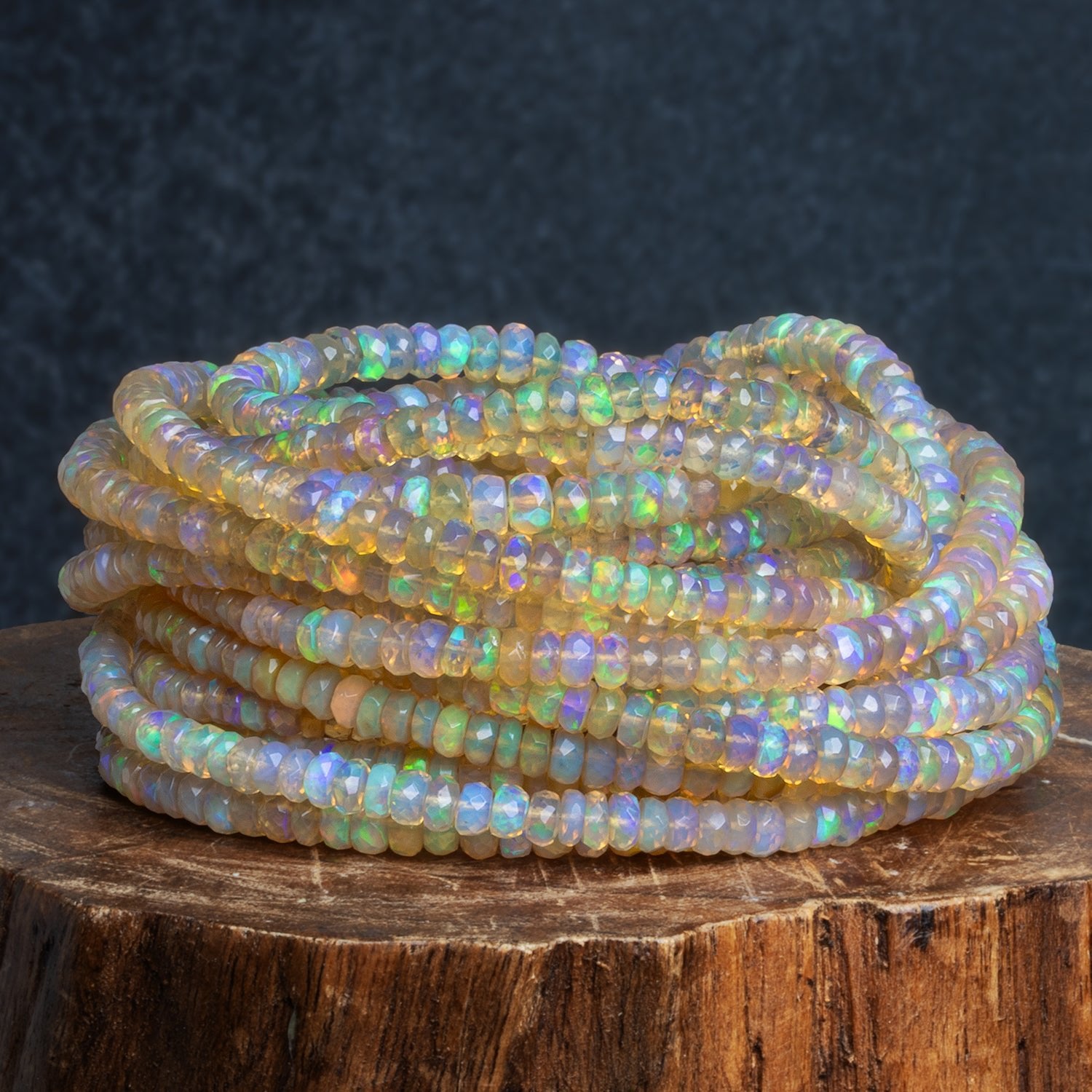 4-7mm Ethiopian Opal Faceted Rondelles 16 inch 150 beads A Grade