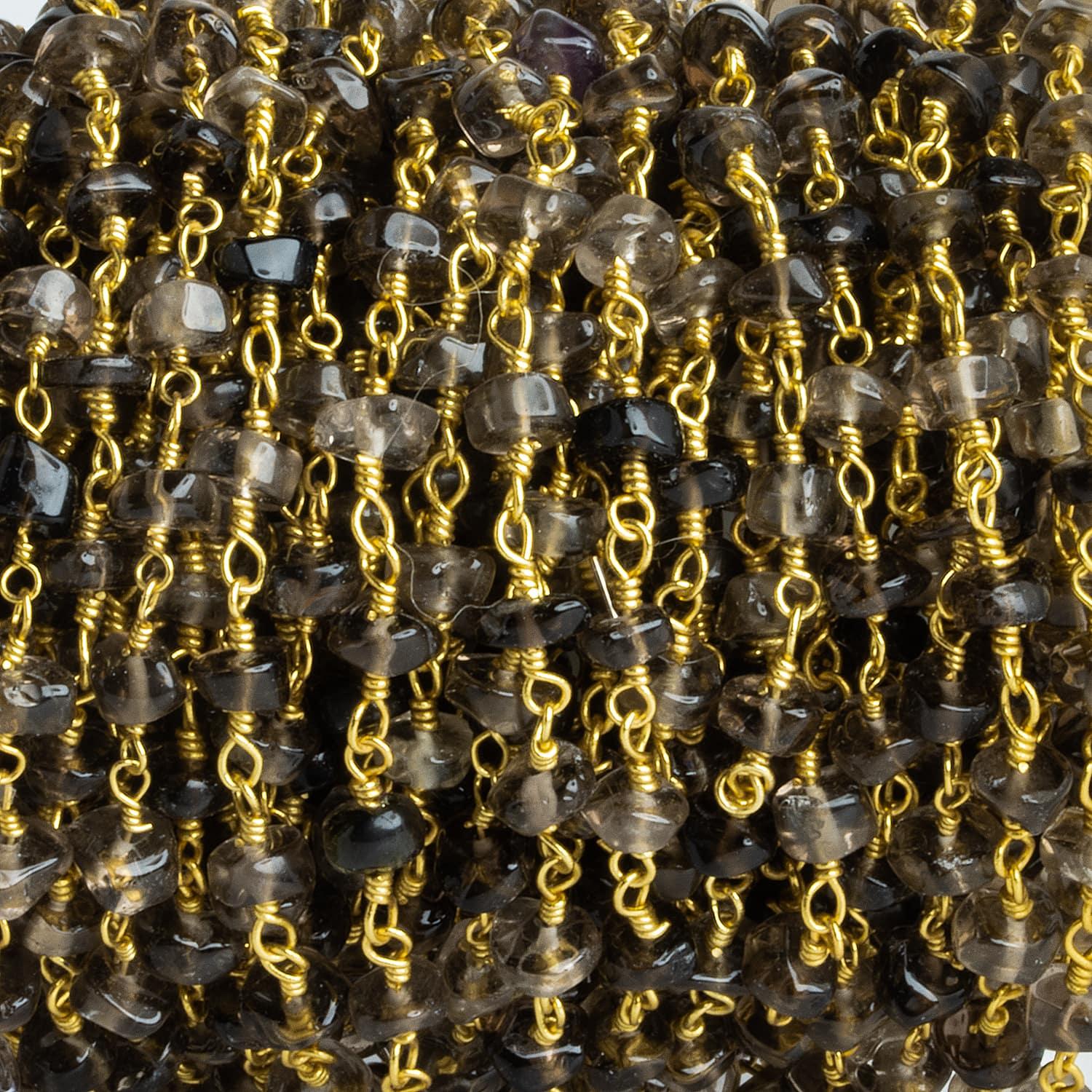 4-5mm Smoky Quartz Heishi Gold Chain 37 beads