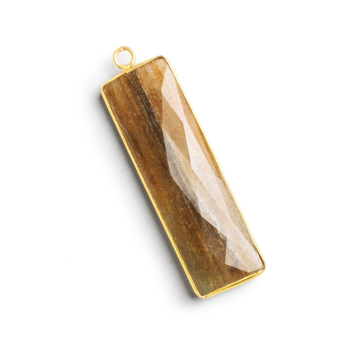 48x13mm Vermeil Bezeled Golden Moss Quartz Bar Pendant 1 Bead