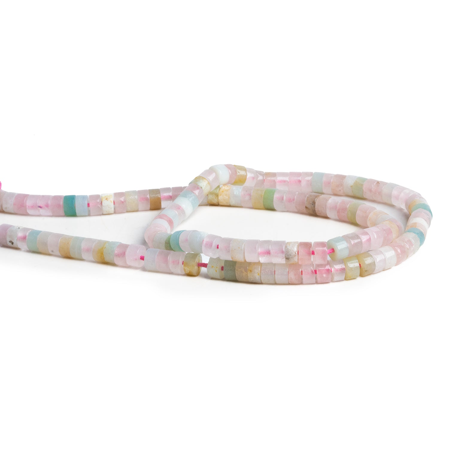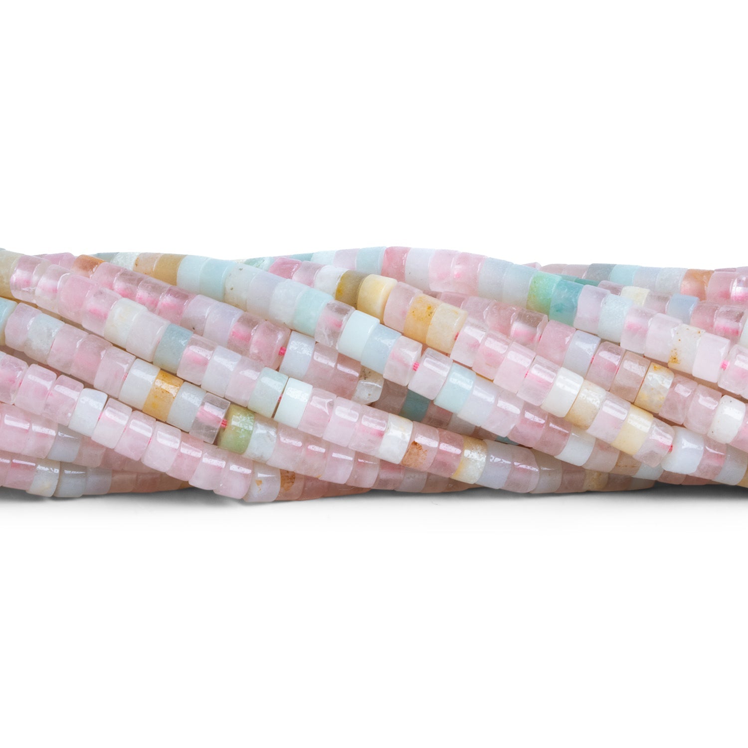 These Beryl Heishi beads feature a stunning mix of pink Morganite, vibrant yellow Heliodor, and cool blue Aquamarine, creating a harmonious blend of colors that evoke a sense of balance and tranquility. Known for its variety and beauty, Beryl is a stone of renewal and energy, making it a perfect addition to jewelry designs that aim to promote emotional healing and positivity. Each bead is unique, with colors interspersed beautifully, offering a lively yet soothing color palette.