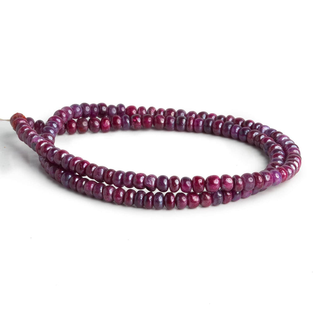 Beads measure roughly 4.5mm in diameter. These vibrantly colored Ruby pieces show off some internal schiller that is intensified by our signature mystic coating. Beads are color enhanced.