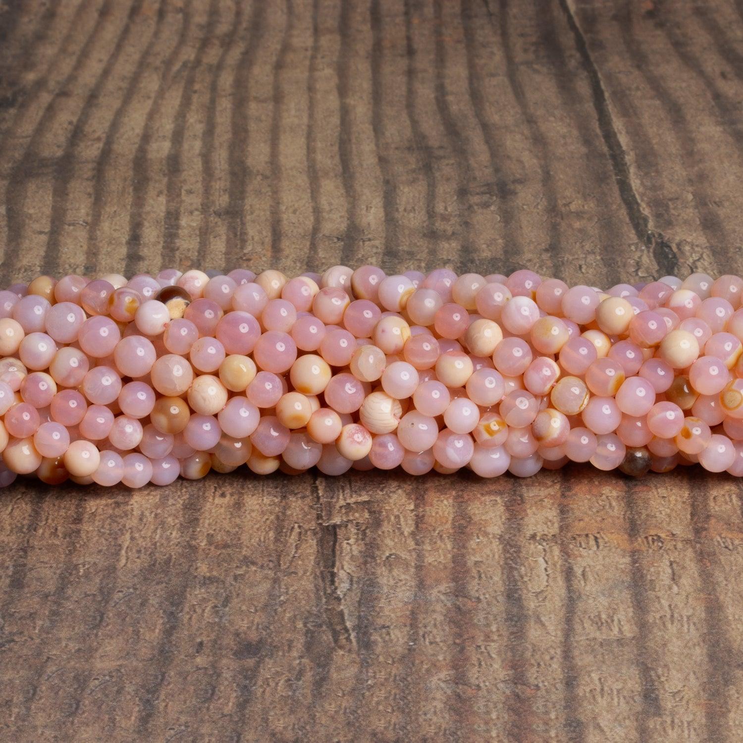Beads measure 5mm to 6mm in diameter with a 0.5mm drill hole. These opals show off a milky pink color palette with creamy yellowish undertones. Expect some eye-catching patterns & textures on these unique, curated strands.