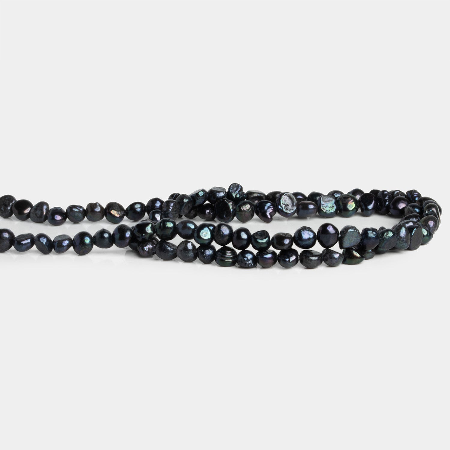 These Midnight Peacock Baroque Freshwater Pearls bring bold, moody elegance to your designs with their lustrous, inky sheen and one-of-a-kind organic shapes. Measuring approximately 5mm in diameter, each bead displays a rich array of dark iridescent hues—deep purple, teal, charcoal, and indigo—making every strand distinct.