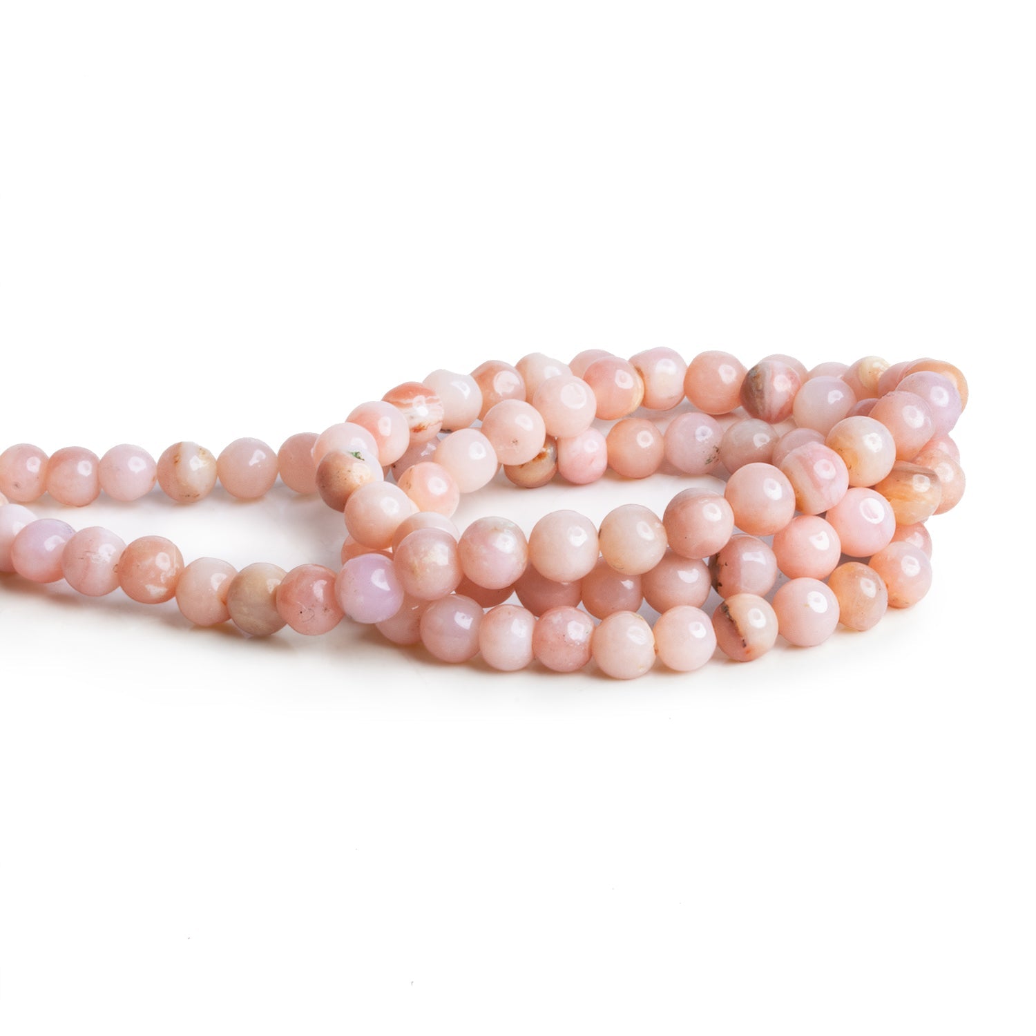 These Pink Peruvian Opal Plain Rounds are soft and soothing in their light, pastel pink hue. The beads measure about 5mm in diameter, providing a delicate, uniform size that makes them perfect for creating gentle, feminine designs. Their smooth, polished surfaces reflect a subtle shine, enhancing their natural beauty. The soft pink tones are versatile, pairing well with a variety of other gemstones and metals, and they offer an elegant and calming presence to any jewelry piece. Whether used in a bracelet, necklace, or earrings, these beads are sure to add a touch of serene sophistication.