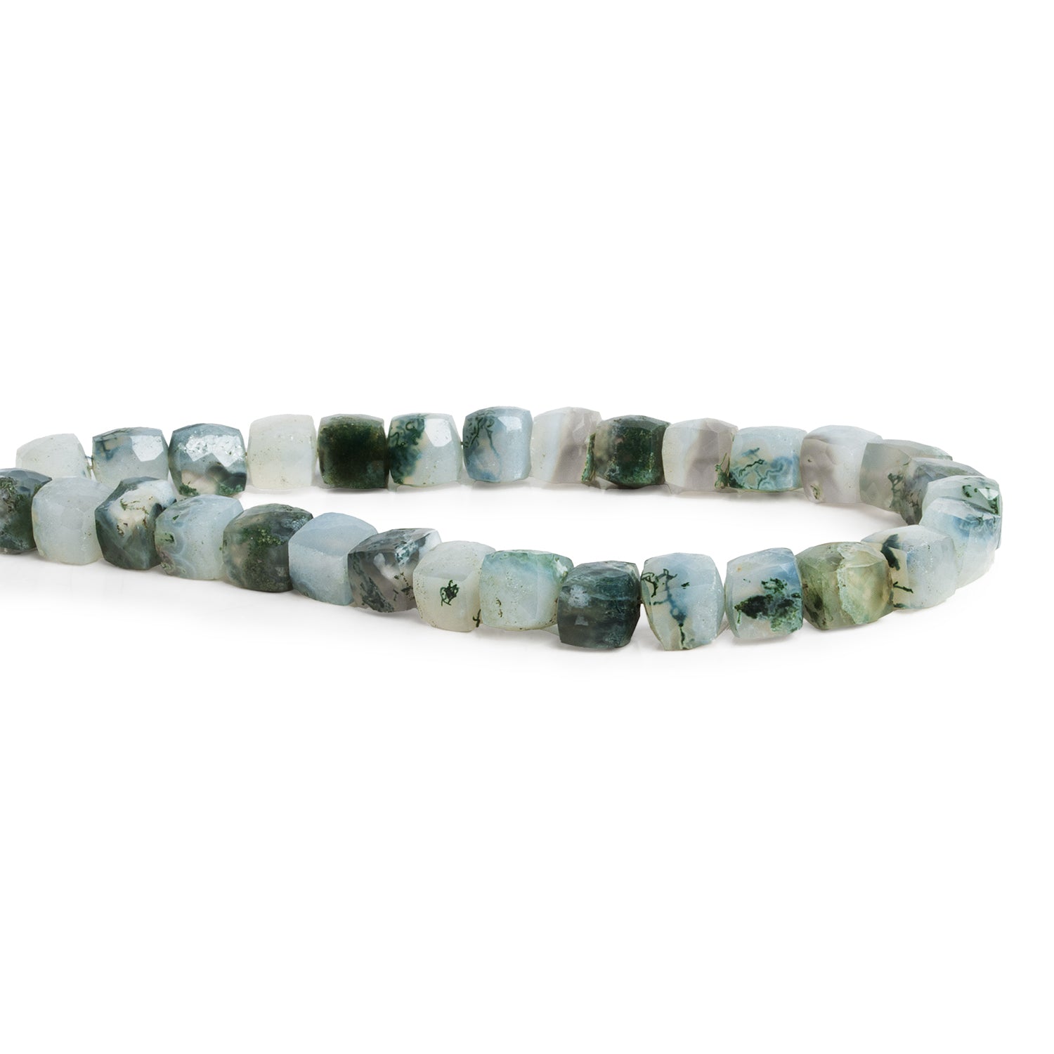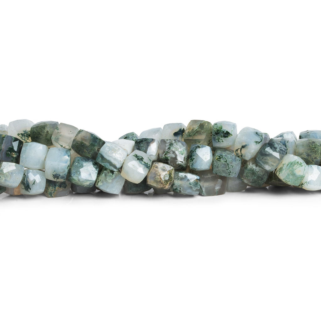 Beads range from about 6.5mm to 7mm in diameter. These exquisite beauties show off everything there is to love about Moss Agate. Experience lush gardens and rivers of milky white in every faceted cube piece. These cool, forest-toned pieces are ideal for use in a wide variety of Jewelry Design purposes, from necklaces to earrings and more!