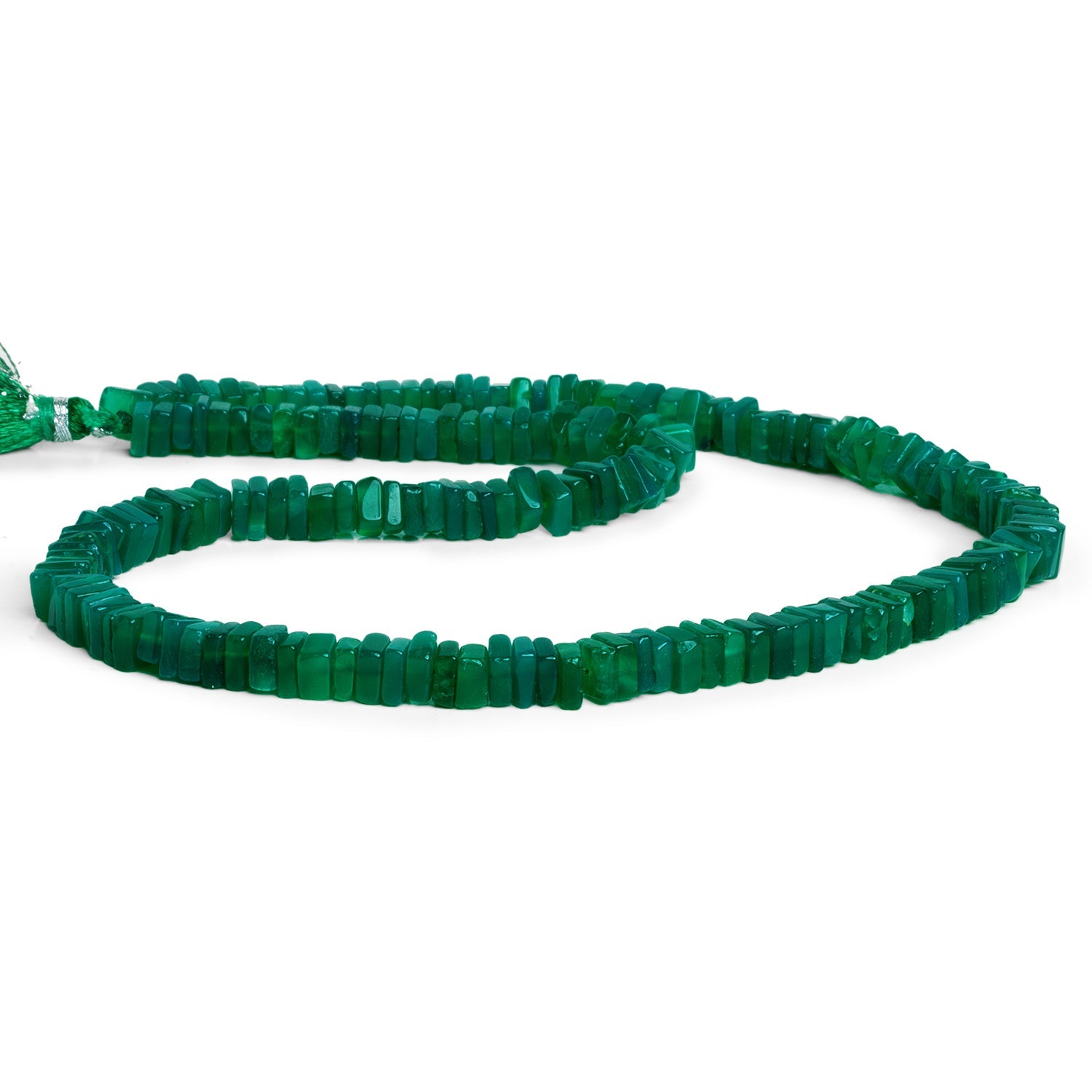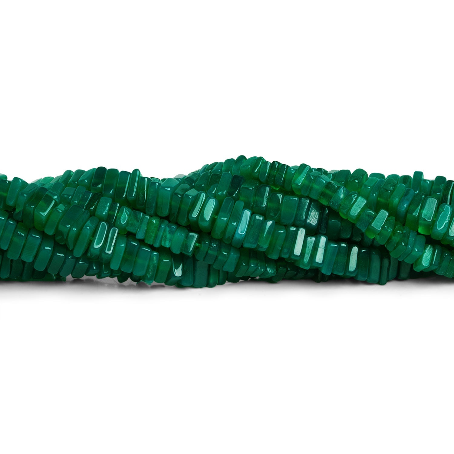 Explore the wonders of our unique and alluring Green Onyx Square Heishi beads. These deep-green Onyx pieces are formed into a thin, square heishi shape that varies slightly in both thickness and diameter. Expect the milky translucent, rich green coloration familiar to fans of Green Onyx.