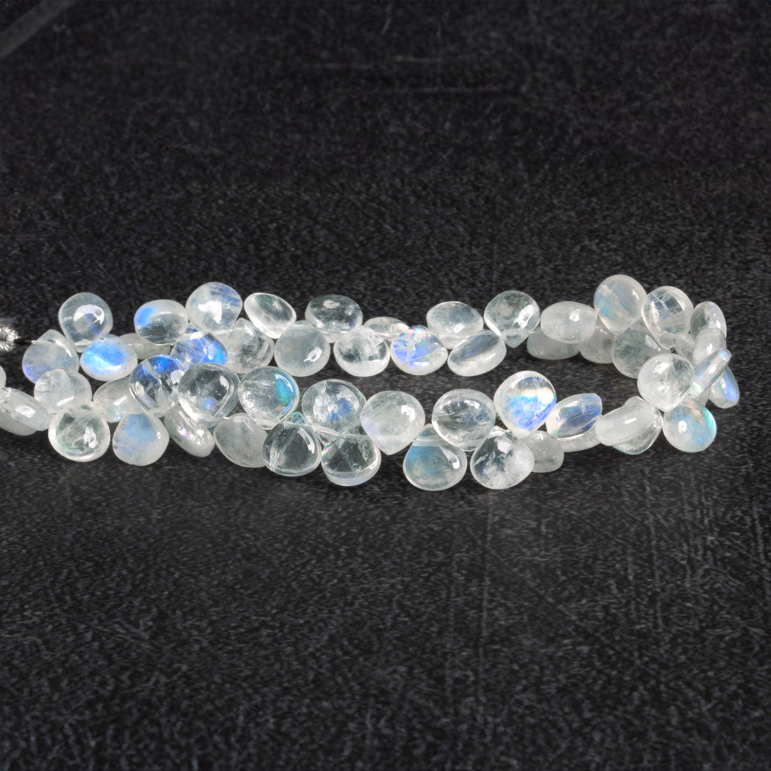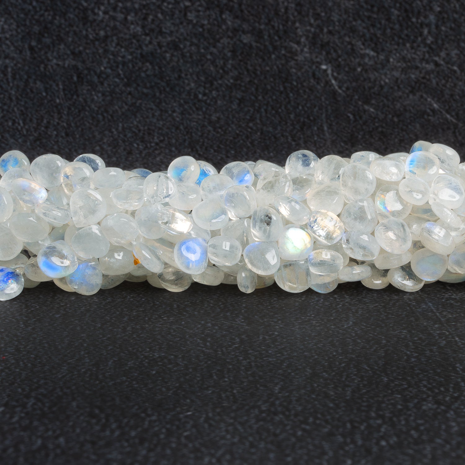 These curated strands feature exquisite plain hearts fashioned from high-quality Rainbow Moonstone filled to the brim with vibrant blue coloration. These relatively clear and thin bodies constitute a splendid epitome of the gemstone's most sough-after characteristics. Expect these beads to dazzle in any creations with their unique optical effects on full display.
