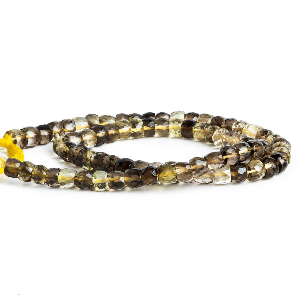 This unique strand of Bicolor Quartz Rondelles features rich tones that range from lemony to smoky with an exquisite, sparkling faceting. This intriguing shape falls somewhere between heishi and rondelle with variations in thickness. Expect excellent clarity of this specially curated offering.