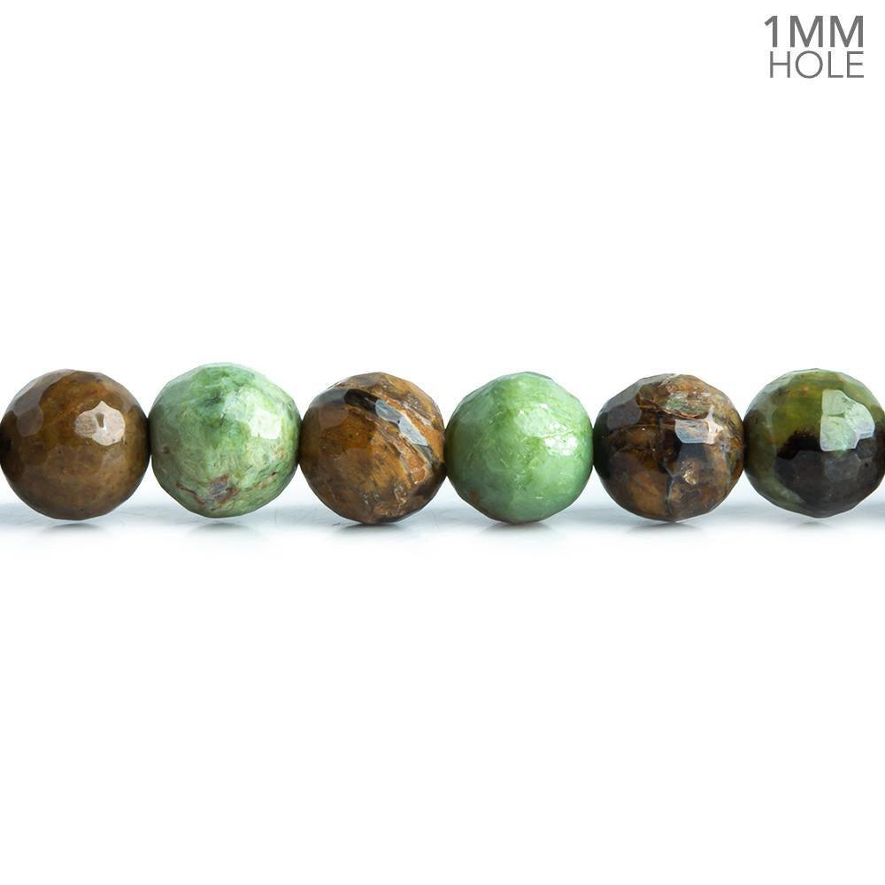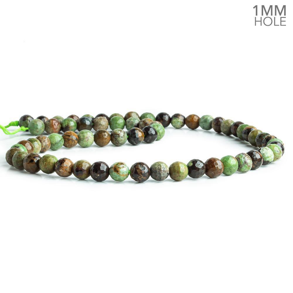 African Opal beads with a green brown color palette and smooth polish with some pitting due to the stone's mixed characteristics.
