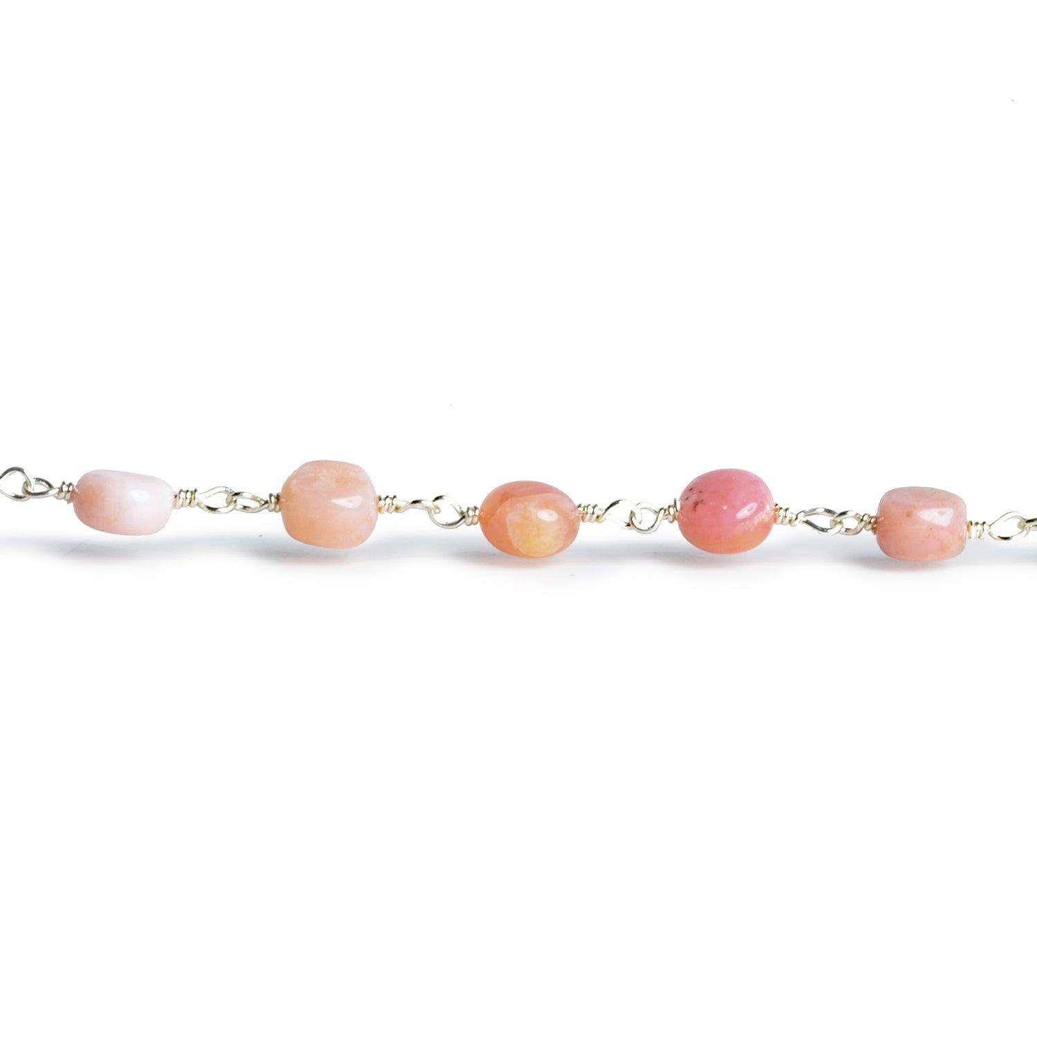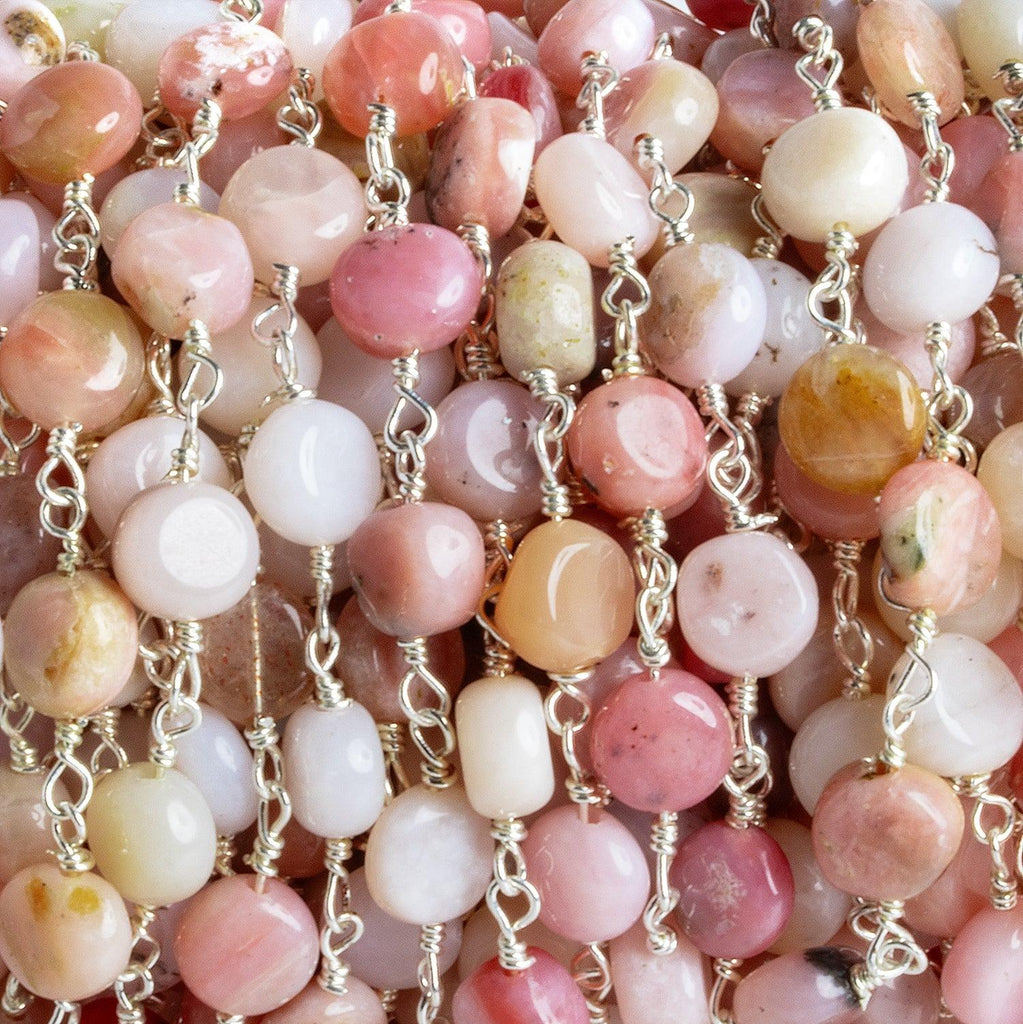 6mm Pink Peruvian Opal Coins Silver Chain 25 beads