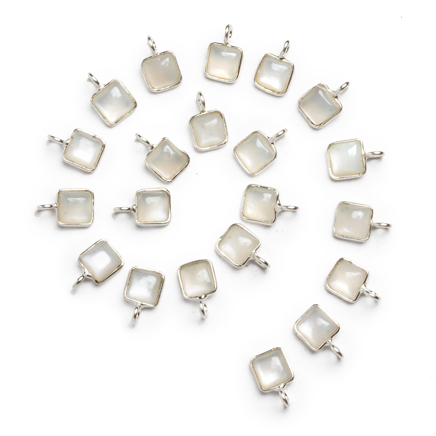 These delicate Silver Bezeled Moonstone Cushion Pendants measure 6mm and are sold individually—perfect for adding a touch of luminous elegance to your jewelry designs. Each pendant features a soft cushion shape with a gently domed, translucent moonstone cabochon set into a sterling silver bezel. These stones exhibit subtle flashes of iridescence, shifting from pearly white to soft grey in different lighting conditions.