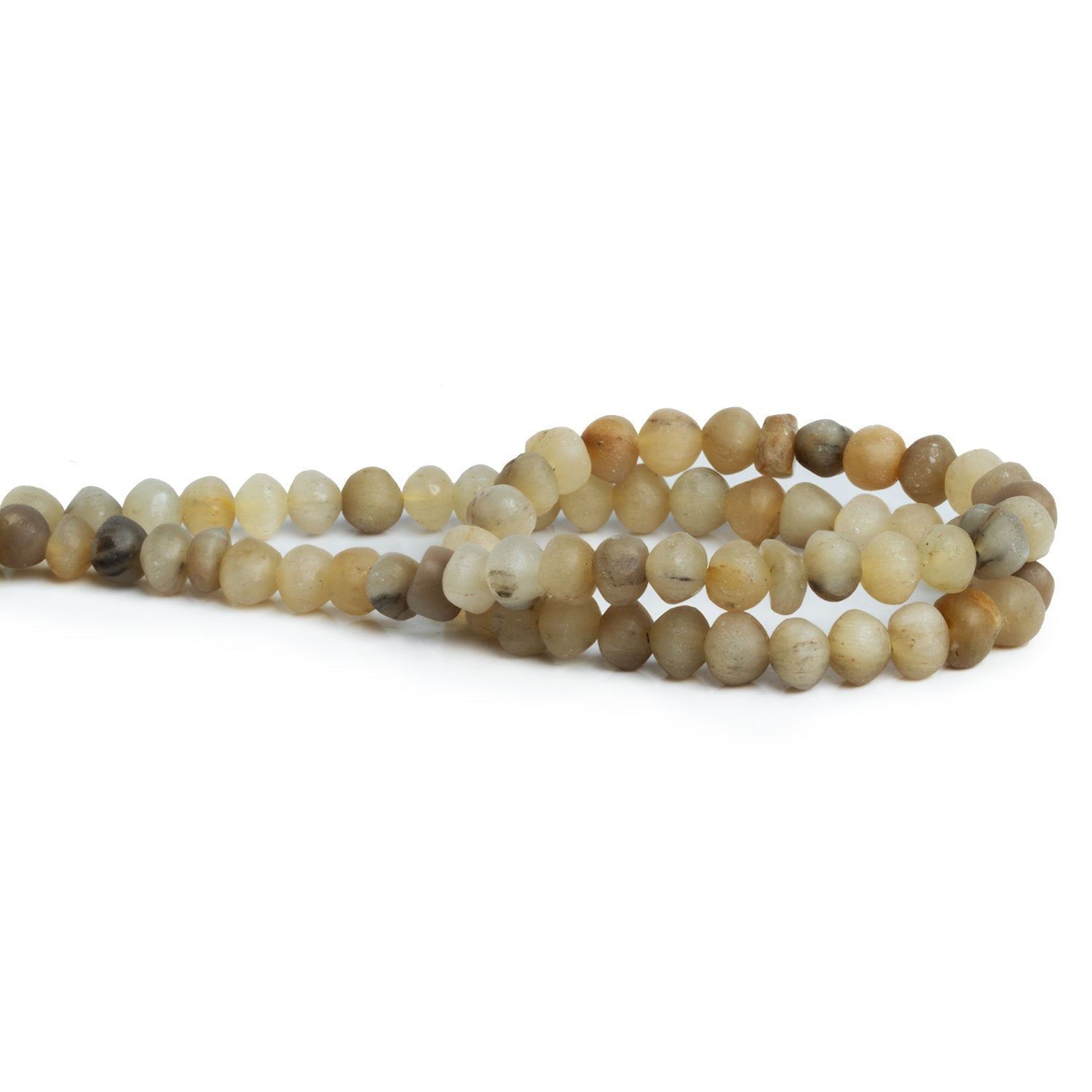 These Yellow Opal Handcut Rondelle Beads showcase a soft, earthy palette that ranges from creamy beige to warm honey and pale golden hues. Each 6mm bead is uniquely handcut, giving the strand an organic texture and subtle matte finish that feels both natural and refined. The rounded shape and varied surface add a tactile charm, perfect for rustic-chic or nature-inspired designs.
