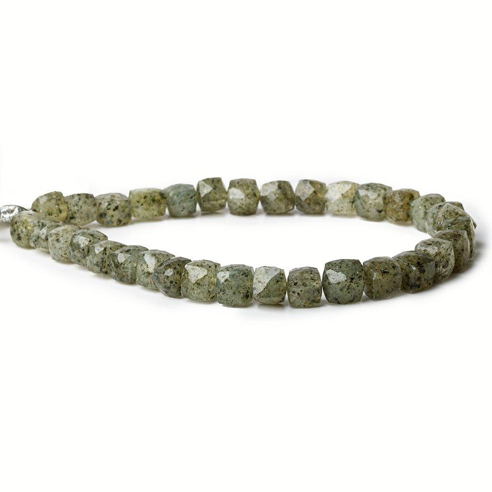 Mossy Quartz faceted cubes 8 inches in length with 33 beads measuring approximately 6x6mm average.