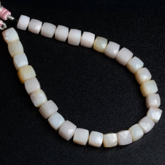 These Moss Aquamarine Faceted Cube Beads offer a beautifully organic blend of mossy green and oceanic blue tones, enriched with earthy inclusions that highlight the natural character of each stone. Expertly cut into soft-edged cubes, each bead measures approximately 7mm to 10mm, with 28 beads per strand.