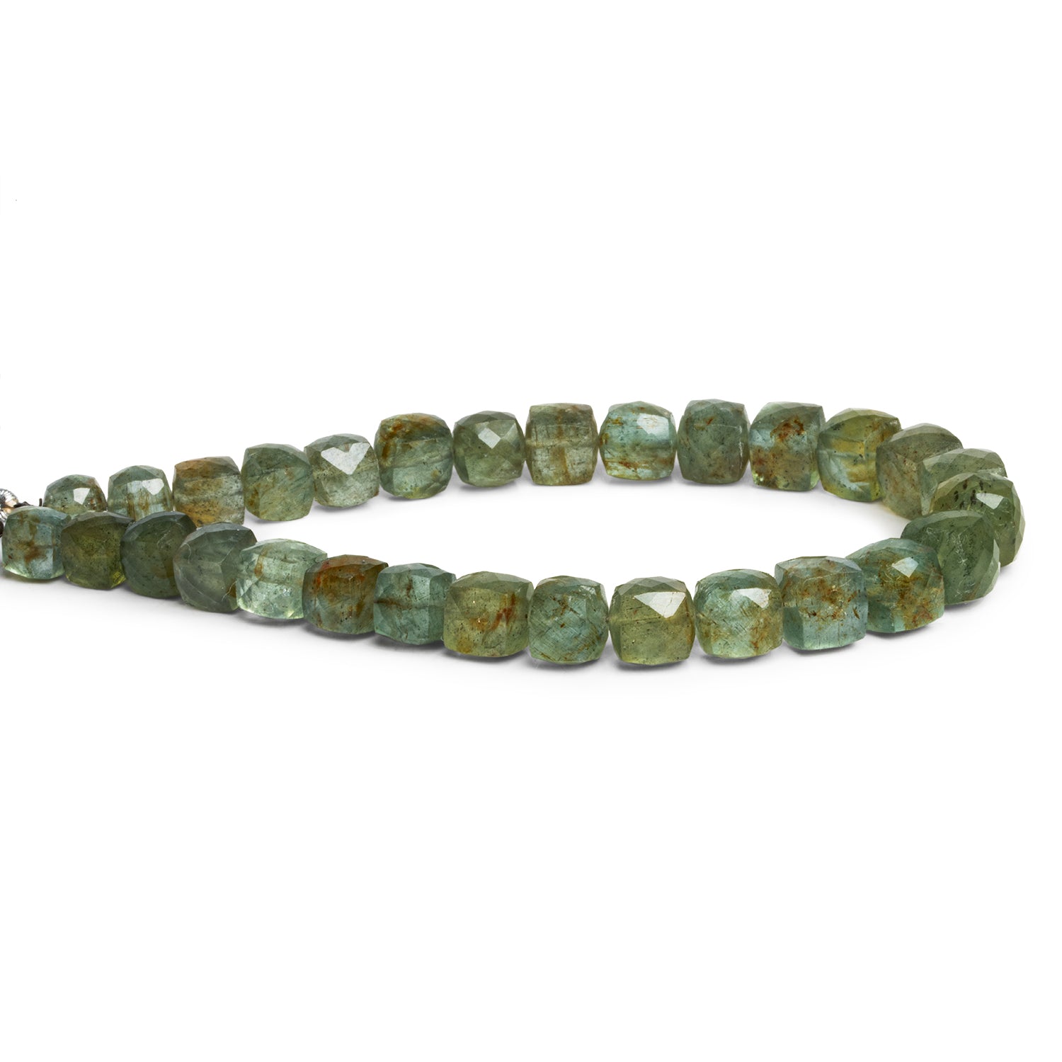 7-10mm Moss Aquamarine Faceted Cubes 8.5 inch 28 beads