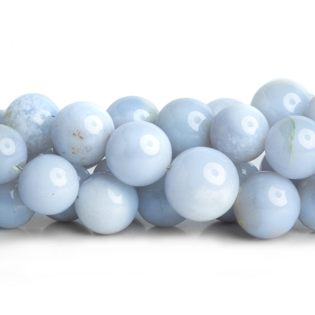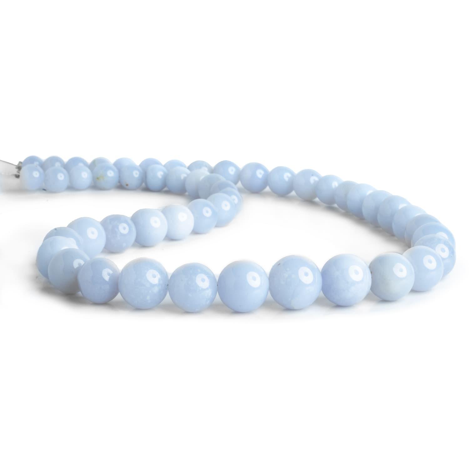 Beads range from about 7mm to 12mm in diameter on graduated strands. These opaque, light blue beads show off the beautiful color palette of natural Turkish Chalcedony. Expect some minor inclusions to be evident along with earth-tone accents.