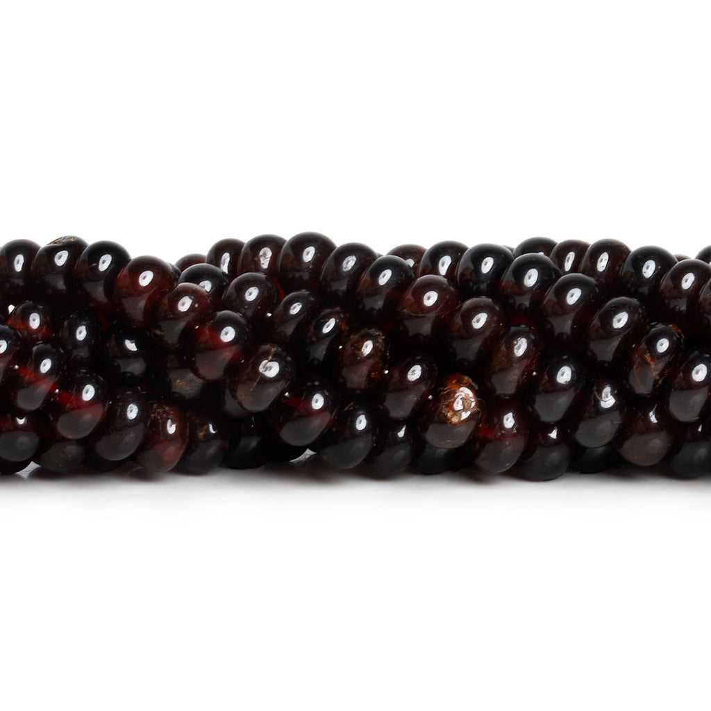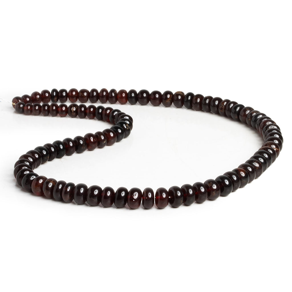 Beads range from about 6mm to 8mm in diameter on graduated strands. These rich red beauties come smooth polished on dark but translucent bodies in a consistent rondelle shape. Fans of dark Garnet will love these curated offerings, ideal as the mainstay of elegant designs from necklaces to bracelets and earrings.