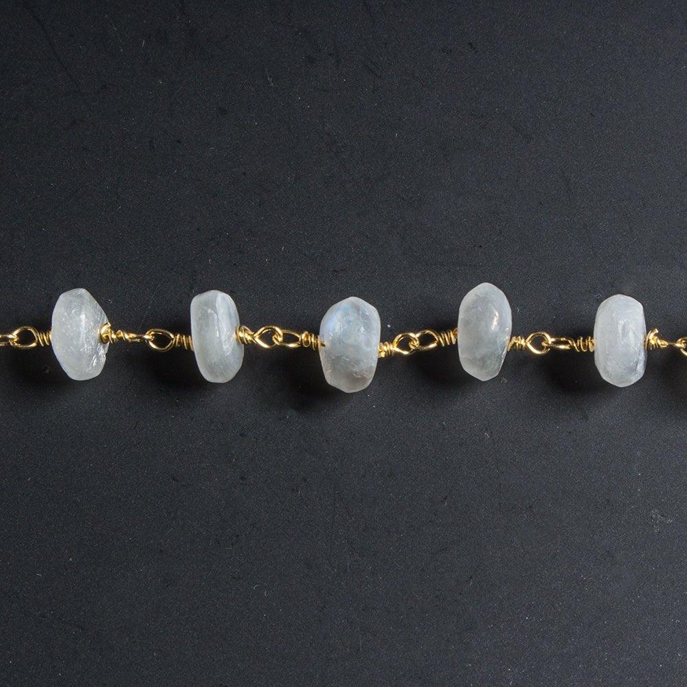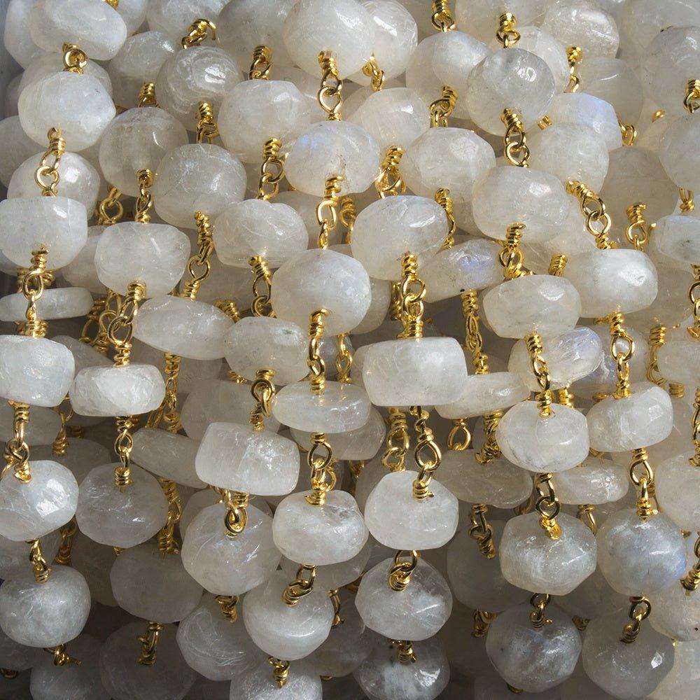 Approximates: 7mm Rainbow Moonstone faceted rondelle Gold plated Chain by the foot 29 pieces per 12 inch. 3 continuious feet = 3 Quantity