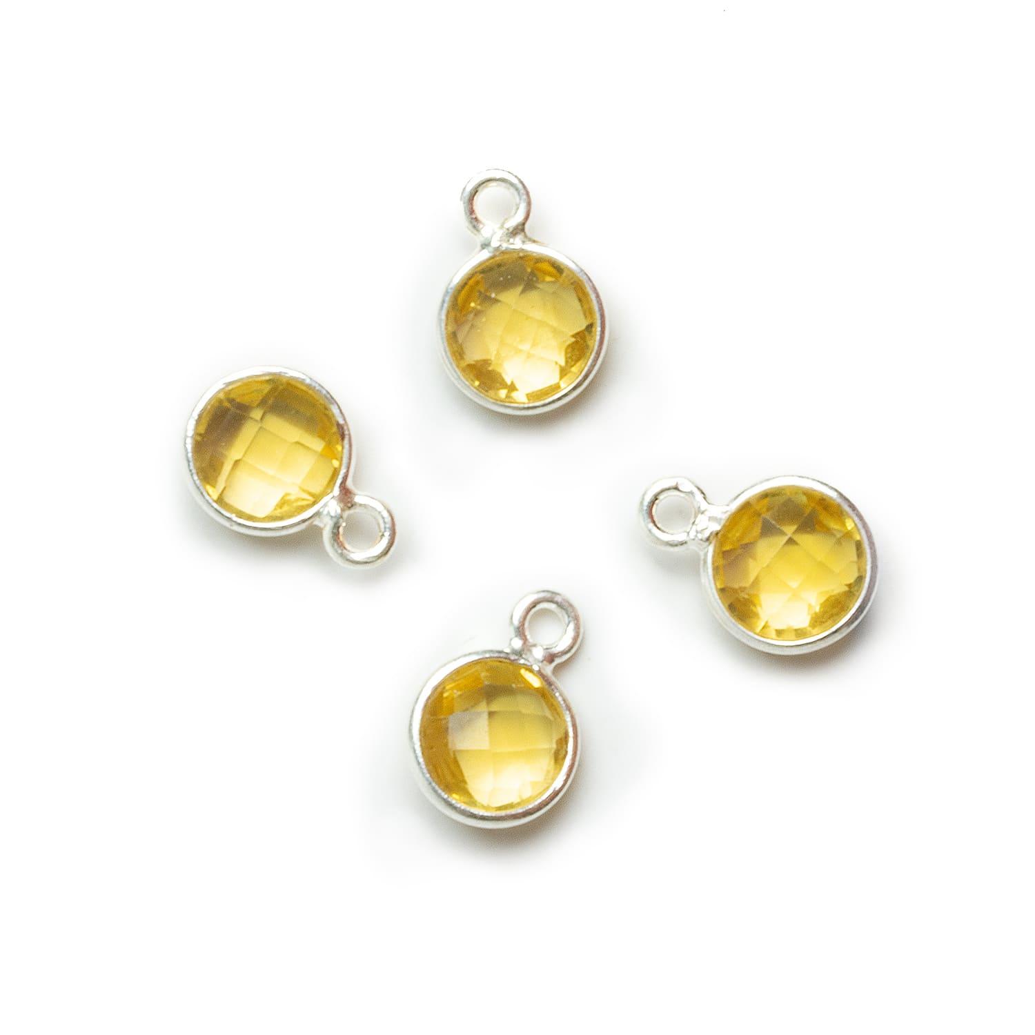 7mm Silver Bezeled Yellow Quartz Coin Pendants Set of 4 pieces