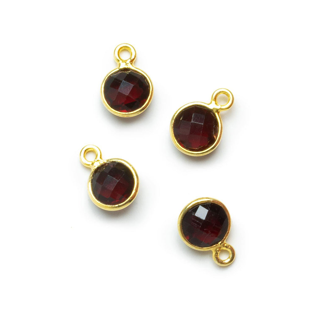 Includes a set of 4 nearly identical pieces measuring 7mm in diameter. These pendants feature translucent bodies with a dark red color similar to that of Garnet which looks amazing on our signature vermeil bezeling. Gemstone is a color enhanced hydroquartz.