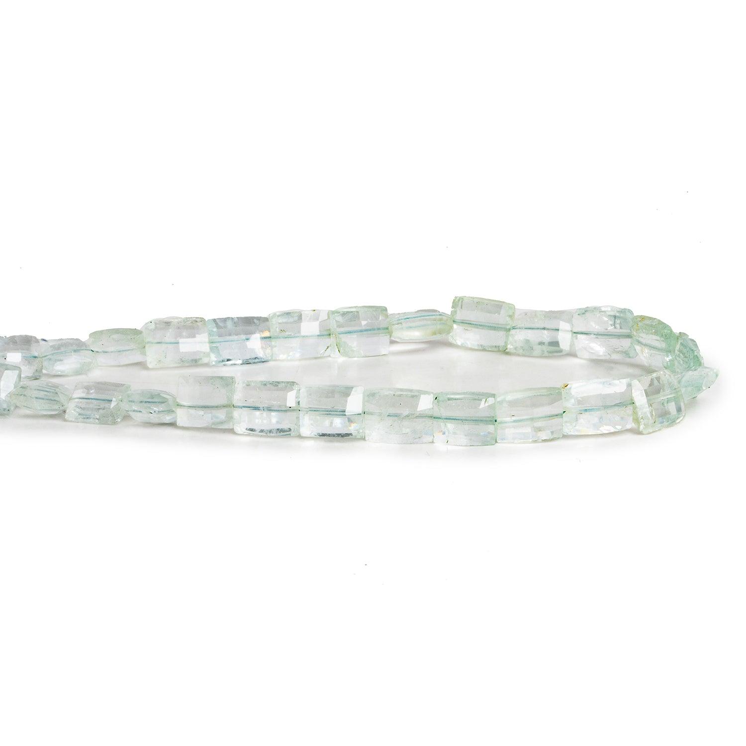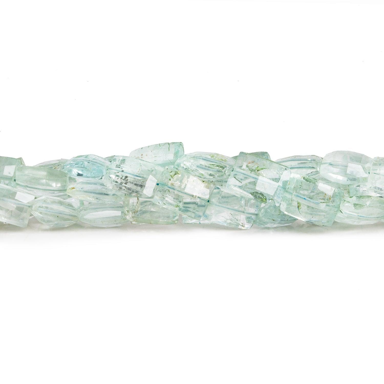Beads measure about 6x5mm to 8x6mm. These beads show off a light blue coloration across translucent bead bodies. Expect some mossy inclusions in these pleasantly blue faceted rectangle pieces.